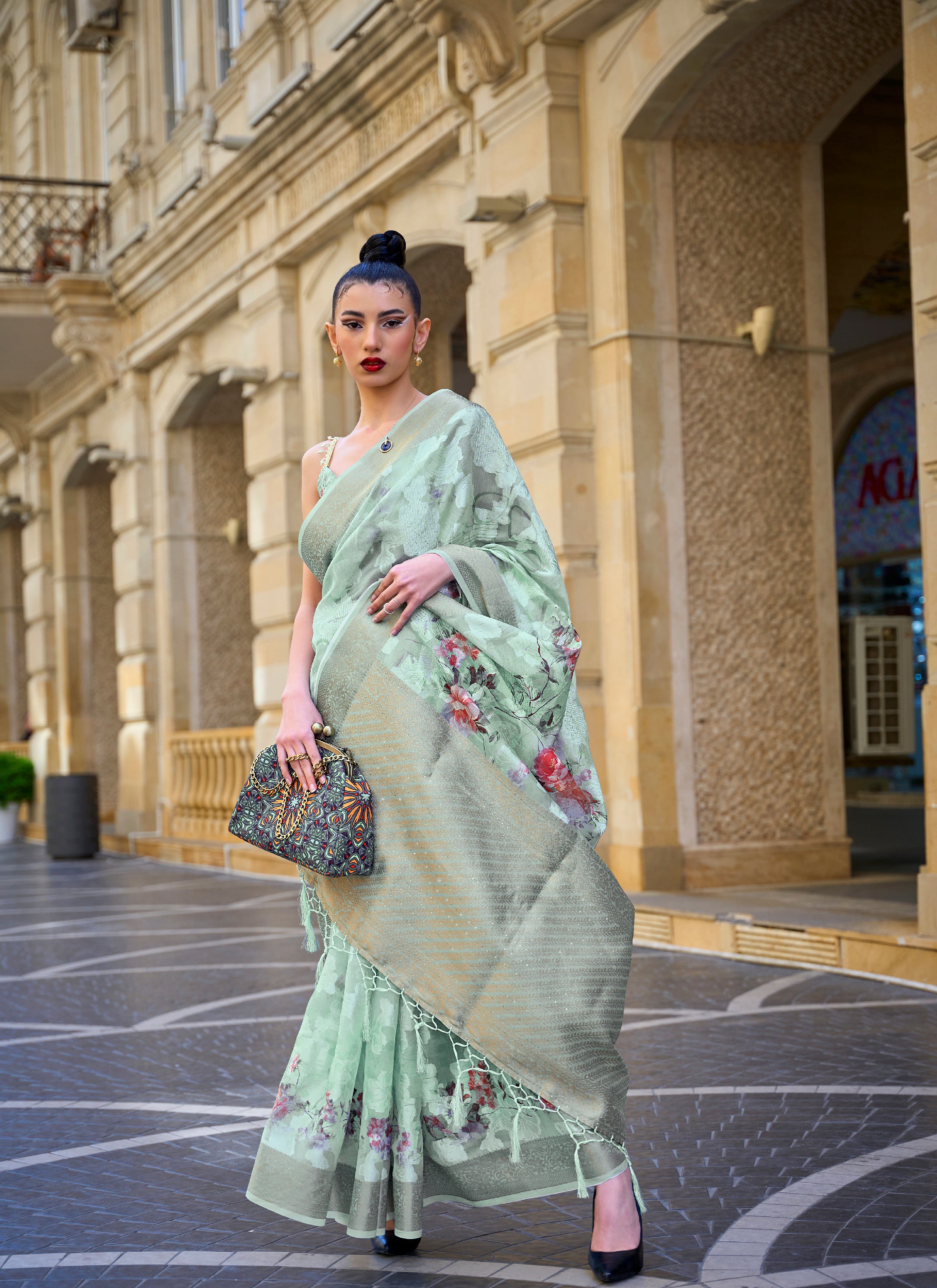 Handloom Weaving: Delicately woven by skilled artisans, ensuring impeccable craftsmanship.