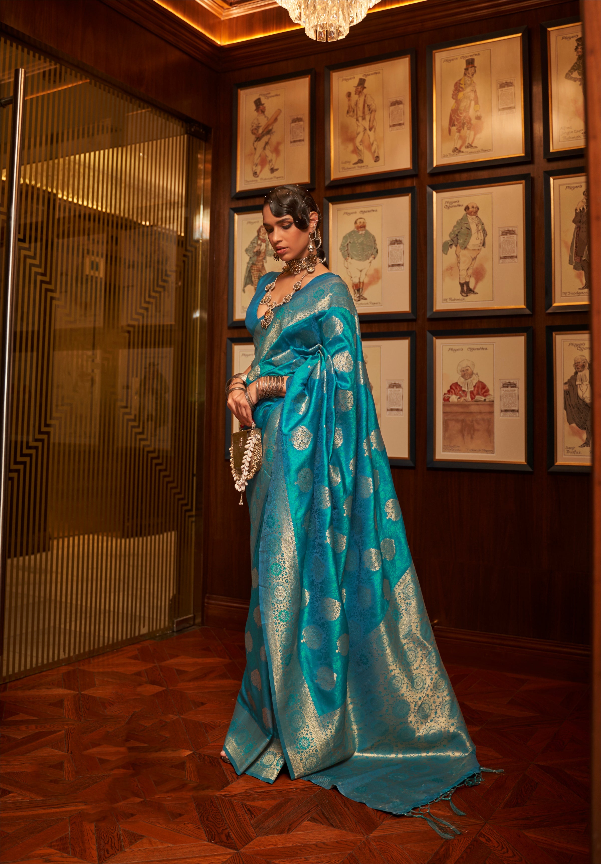 Blue Horizon Zari Woven Kanjivaram Saree: Timeless Sophistication for Special Occasions