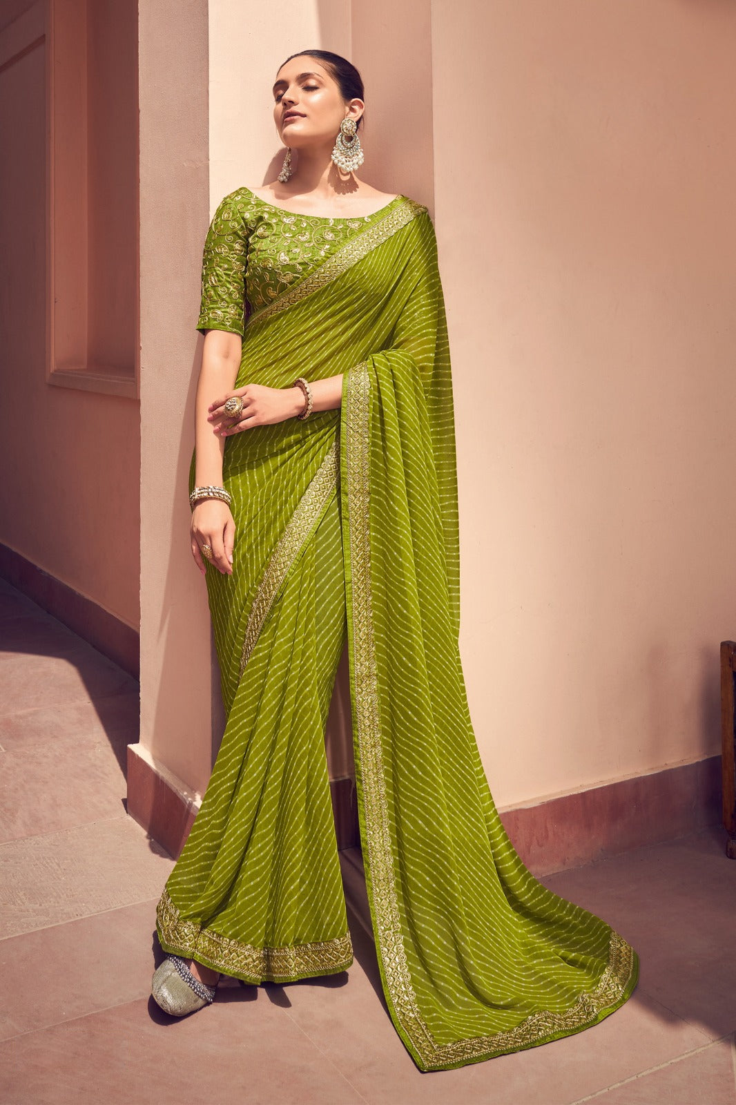 Georgette with beautiful Bandhni Print Saree - Timeless Elegance in Elegant Green