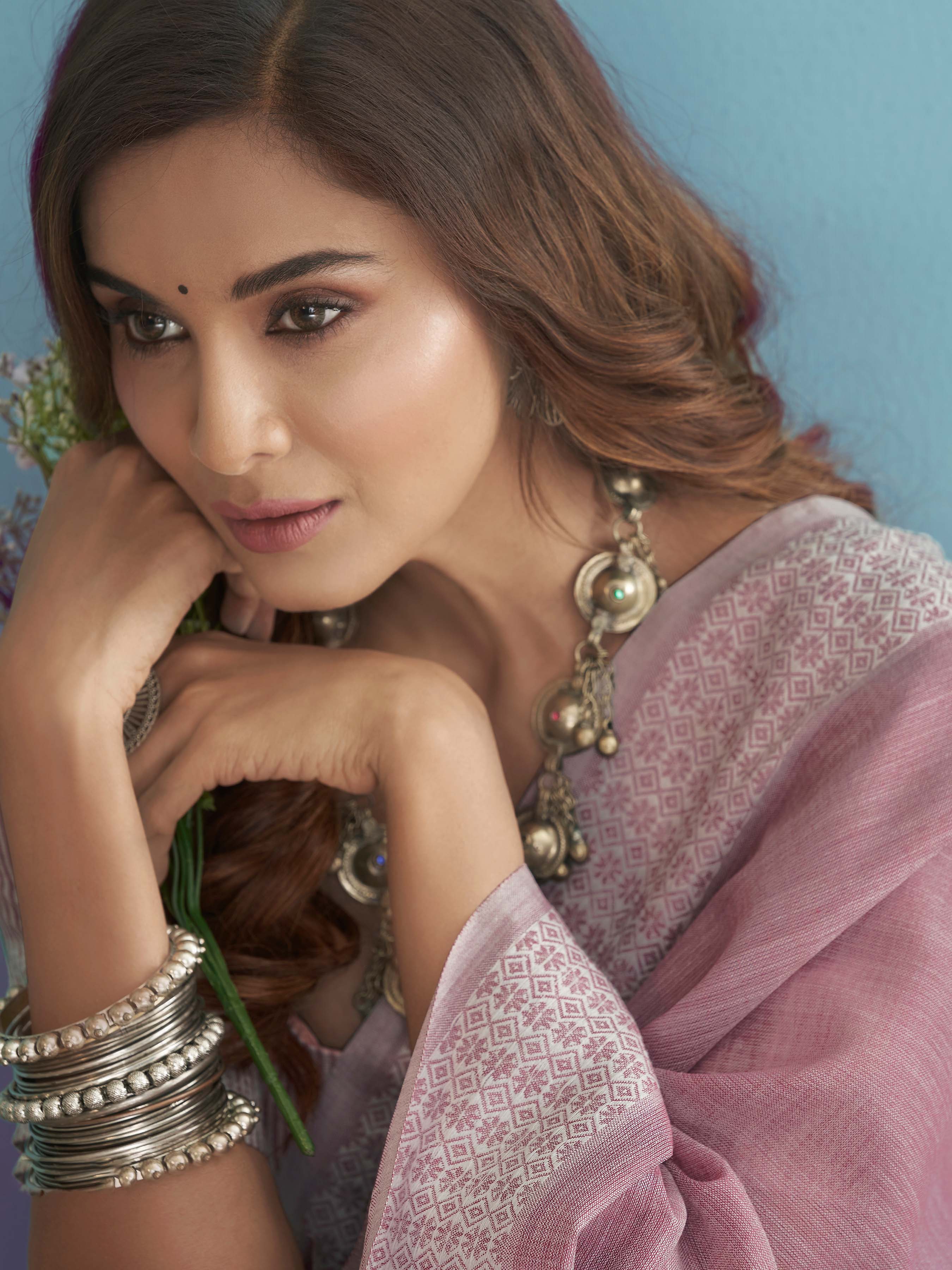 Champagne Pink Pure Cotton Saree - Elegant, Comfortable, and Perfect for Any Occasion