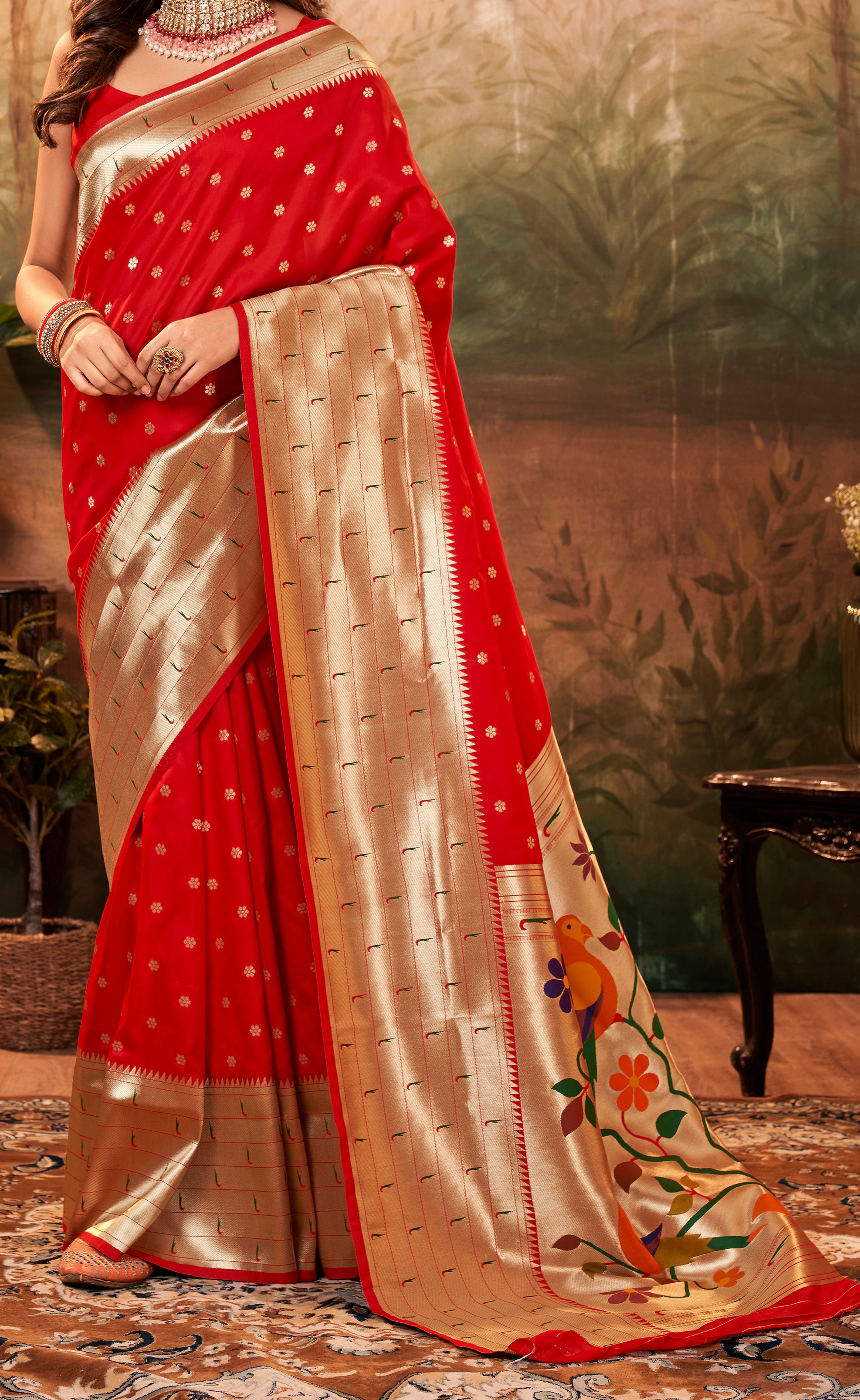 Citrusy Royal Orange Pure Paithani Silk with Zari Weaving Saree: Radiate Elegance