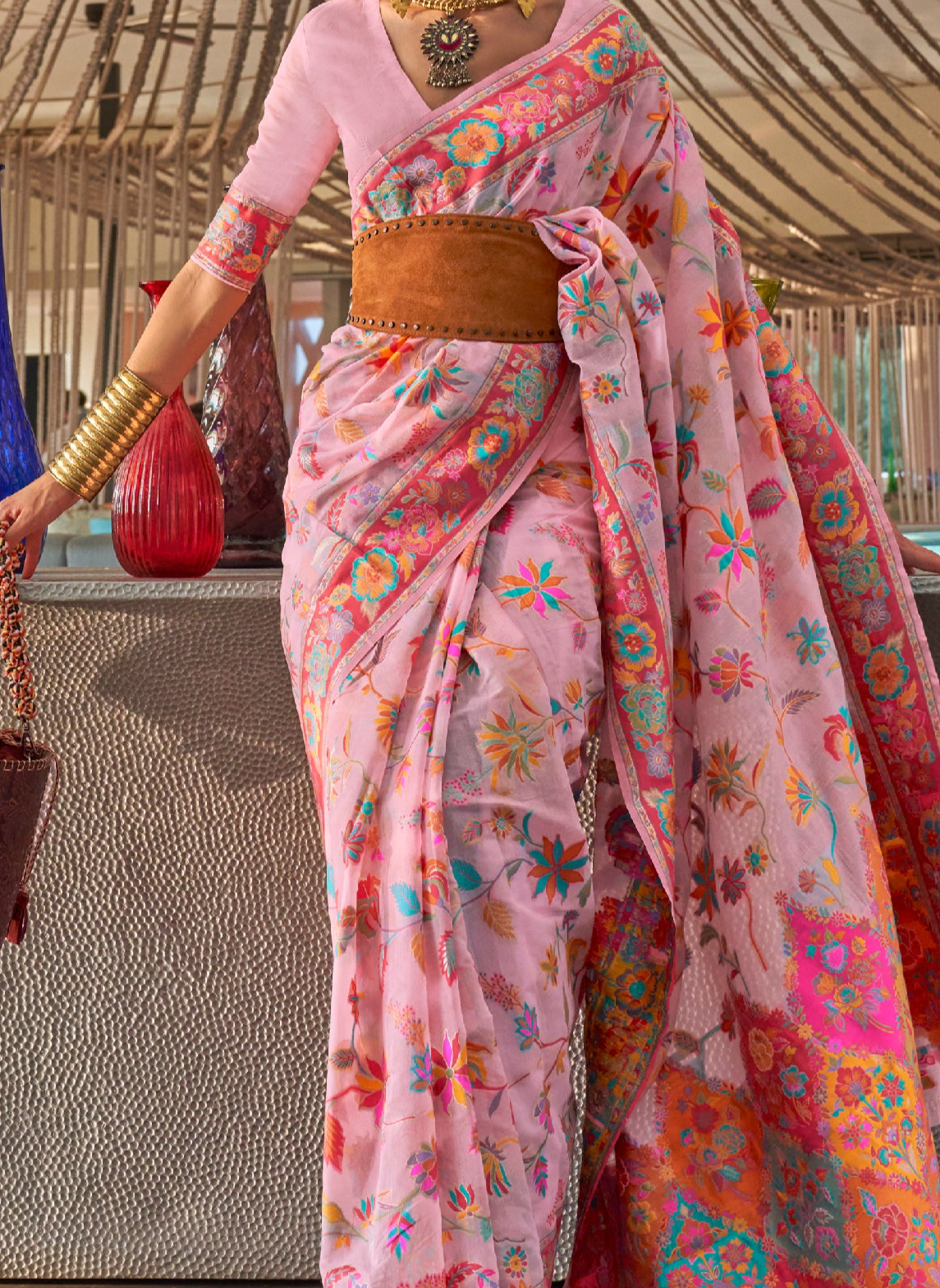 Delicate Light Pink Jamewar Kashmiri Cotton Silk Saree