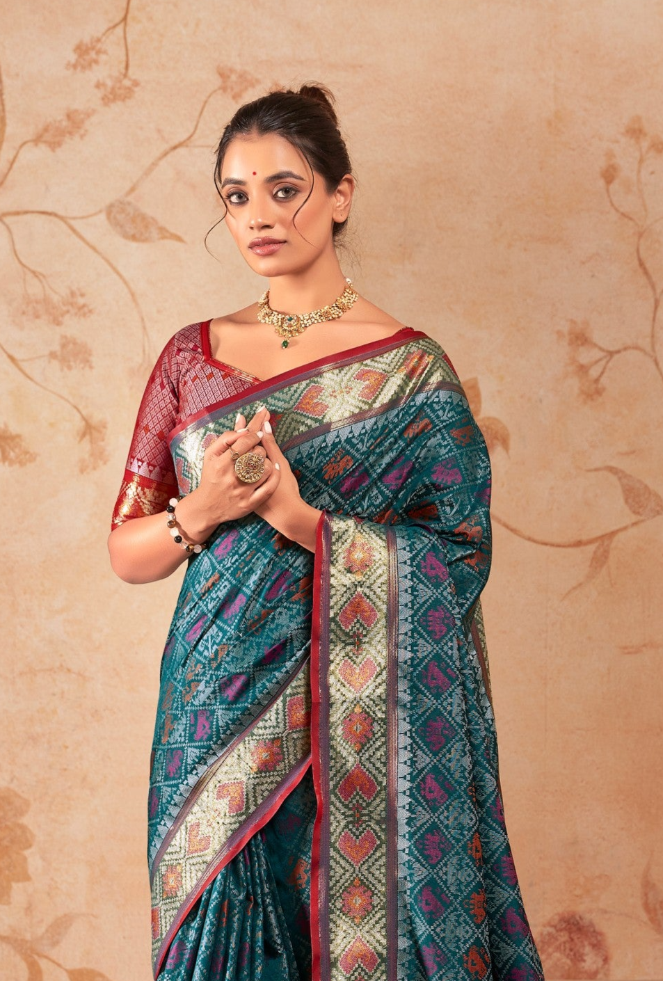 Eden Blue Patola Silk Saree with Zari Weaving: Perfect for Special Occasions