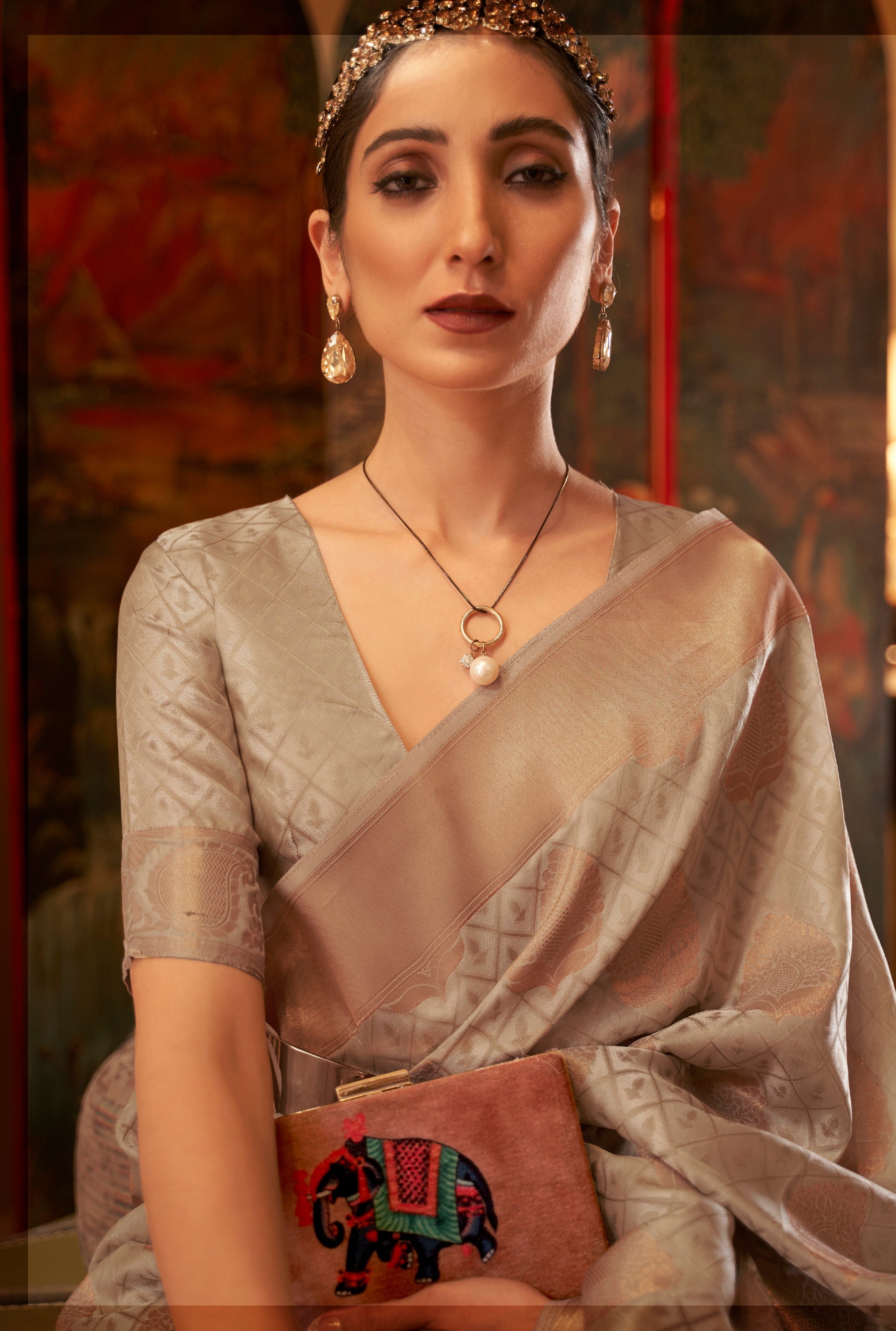 - Type: Banarasi Copper Zari Silk Saree