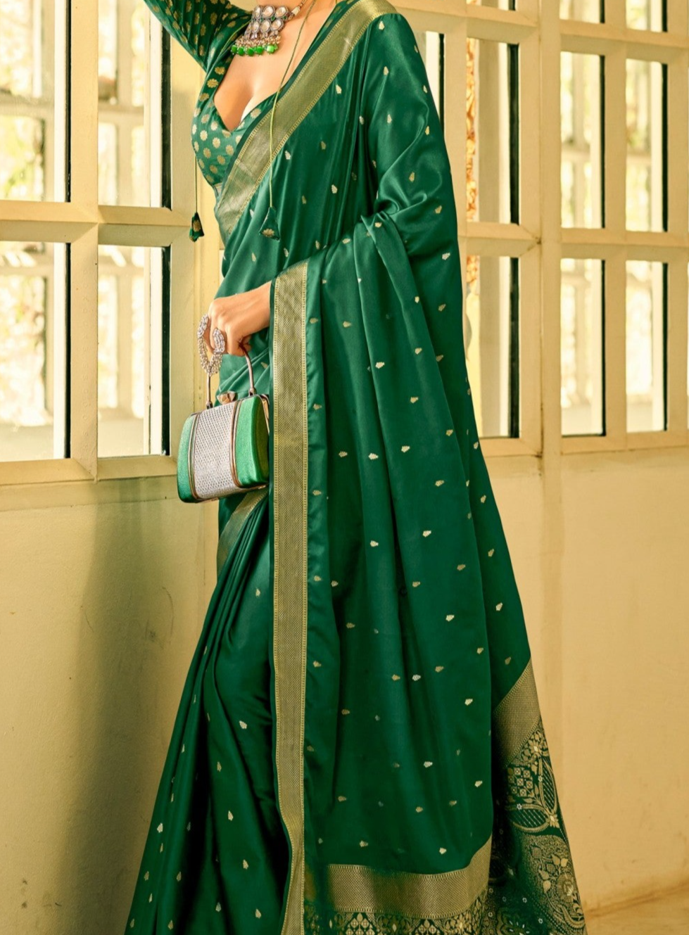 Elegant Dark Green Zari Woven Satin Silk Saree
