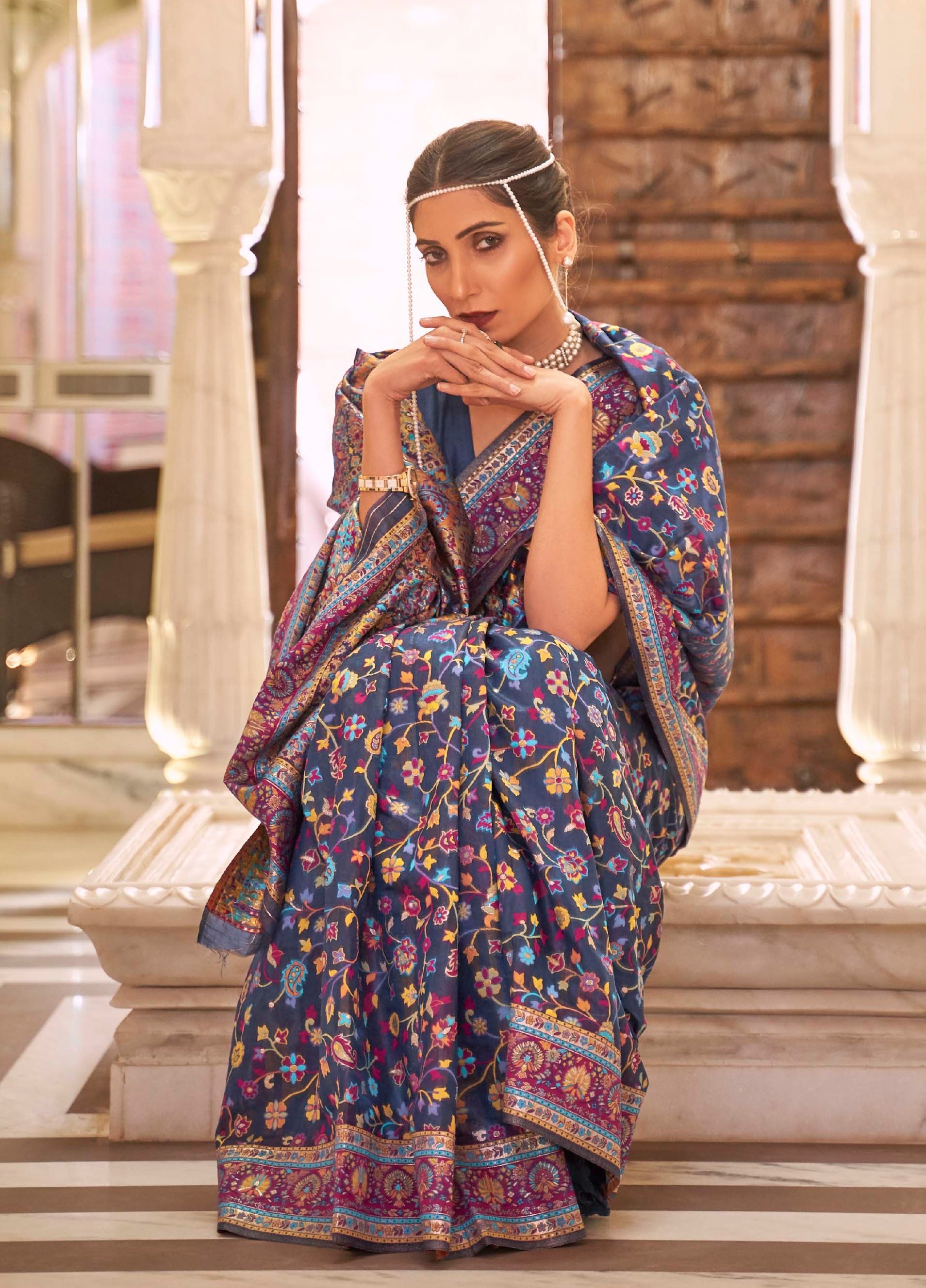 Classy Navy Blue Banarasi Jamawar Woven Silk Saree
