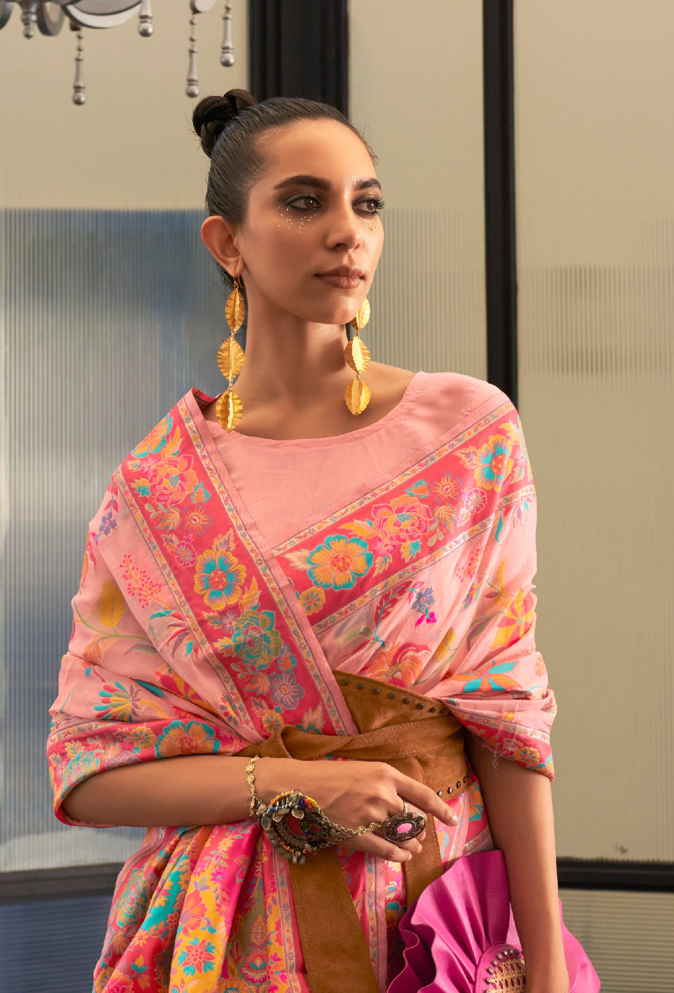 Elegant Pink Jamewar Kashmiri Cotton Silk Saree