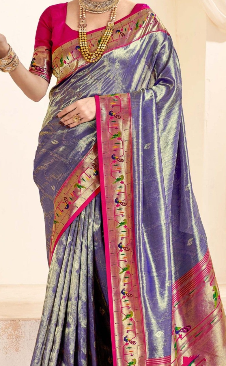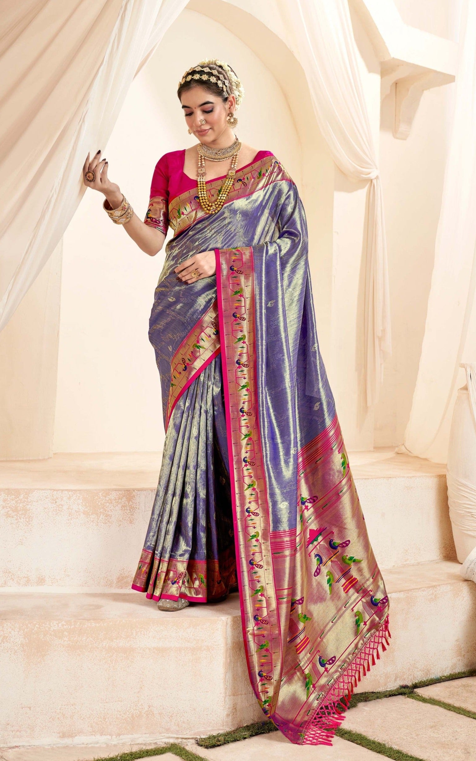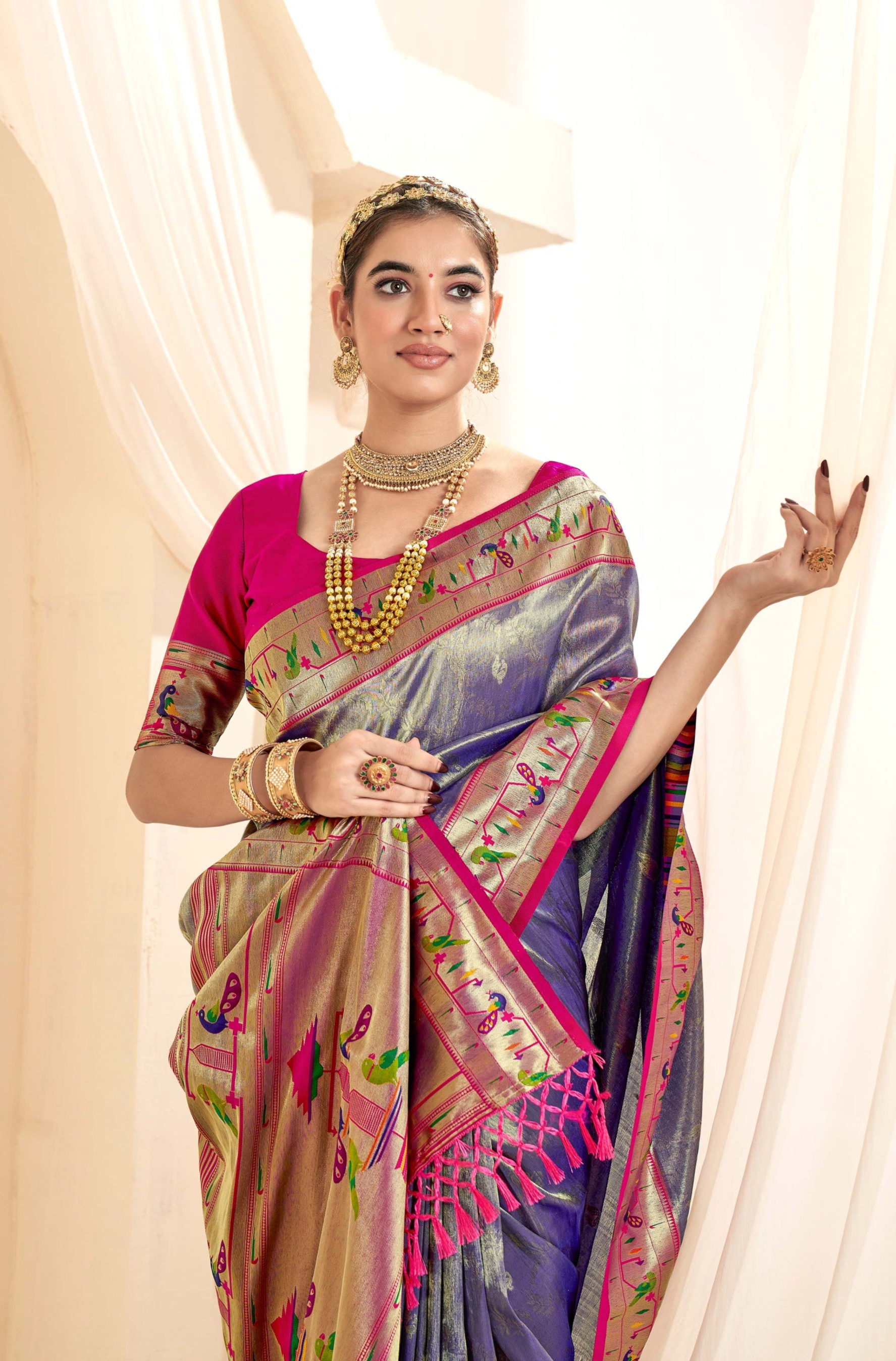 Regal Purple Paithani Tissue Silk Saree - Majestic Elegance for Special Occasions