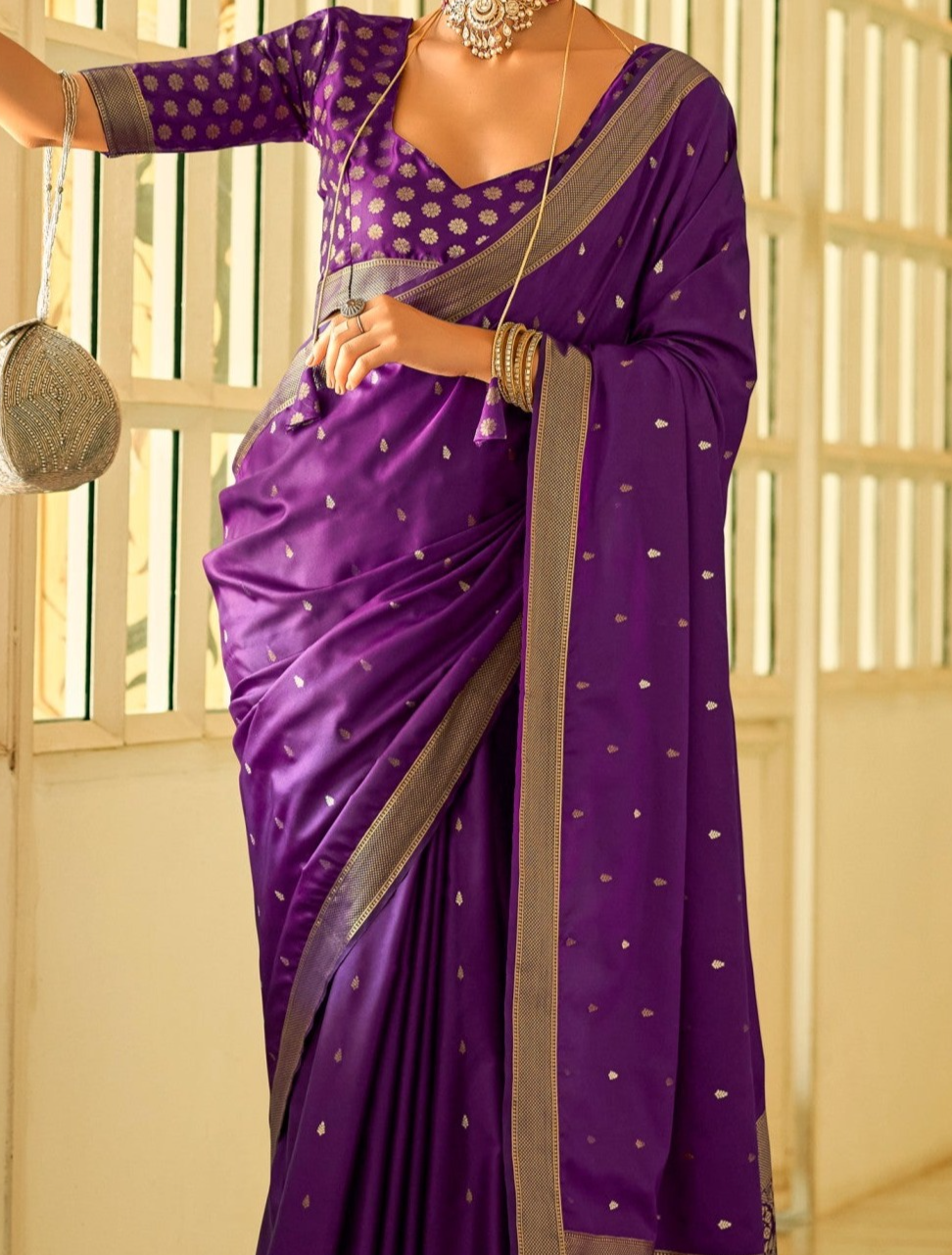 Elegant Purple Zari Woven Satin Silk Saree - Timeless Charm for Special Occasions