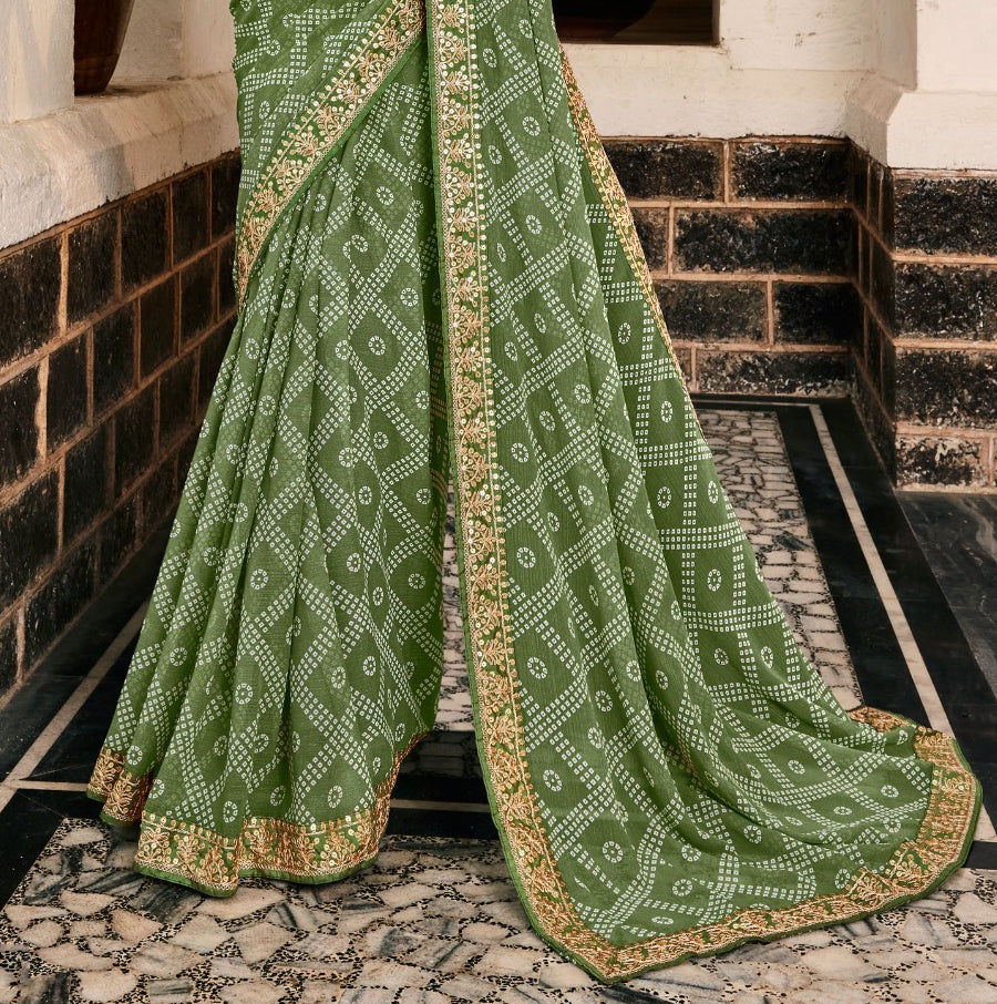 Georgette with beautiful Bandhni Print Saree - Timeless Elegance in Dark Green