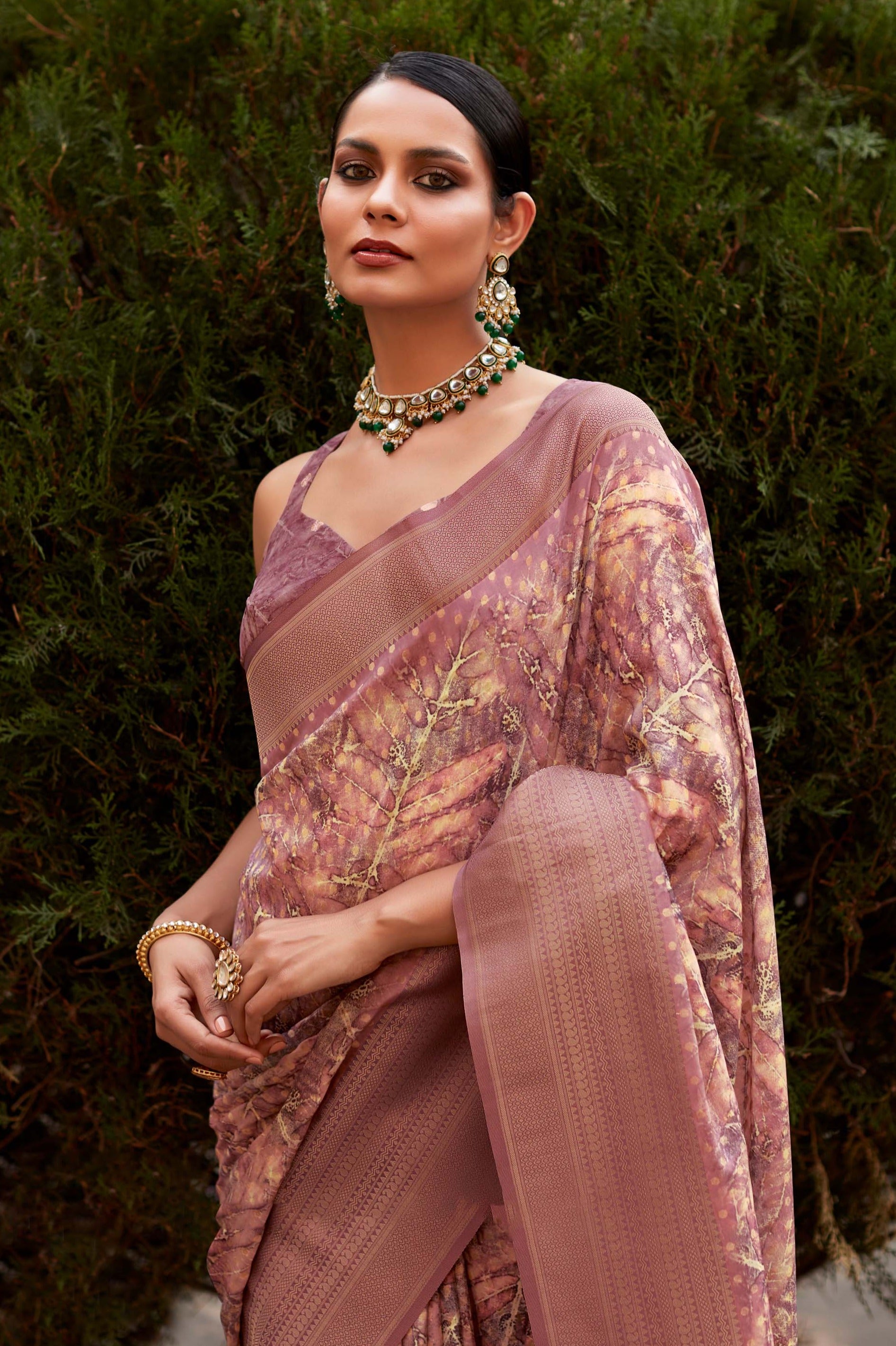 Elegant Spicy Mix Purple Banarasi Digital Printed Silk Saree - Traditional Indian Attire