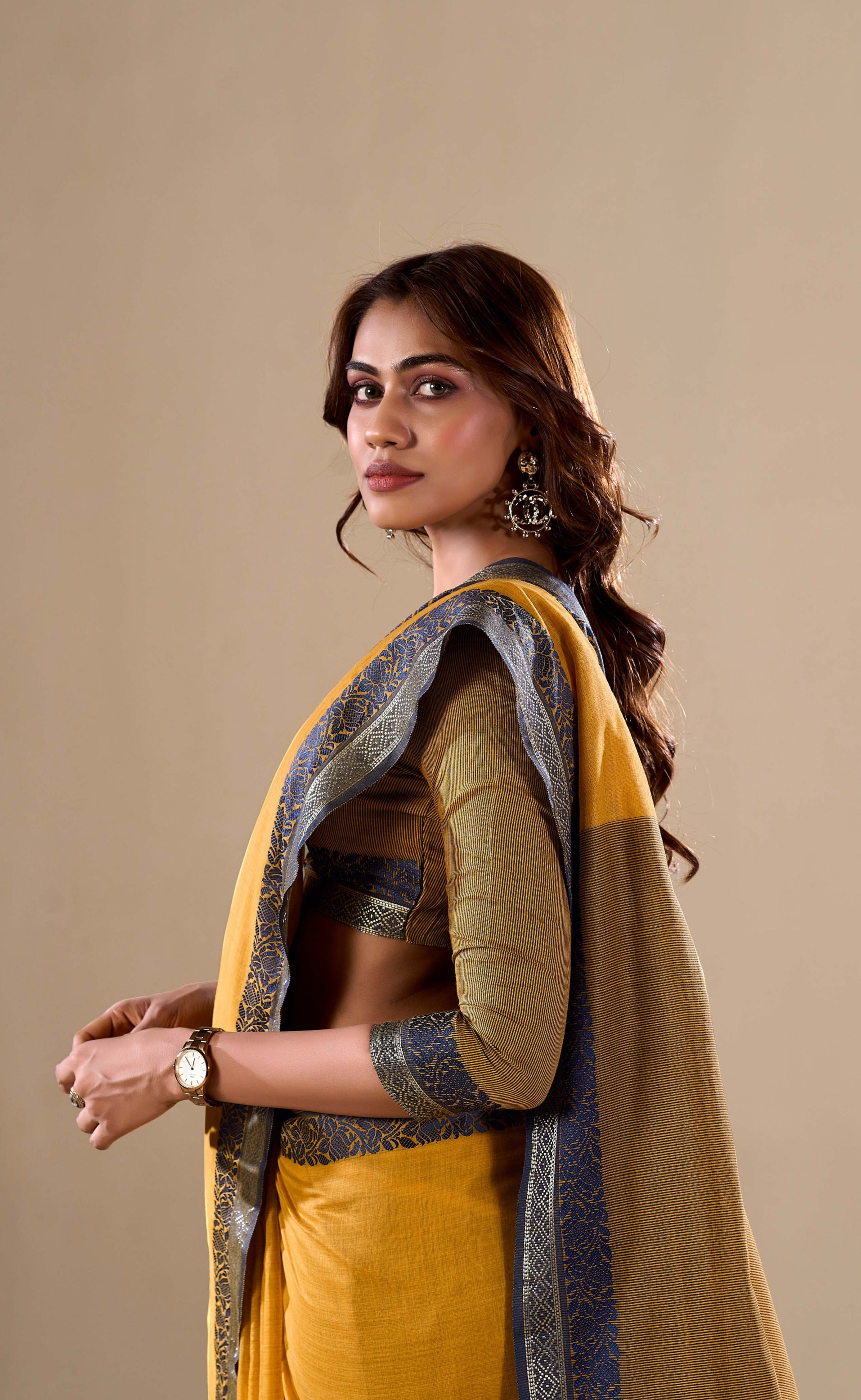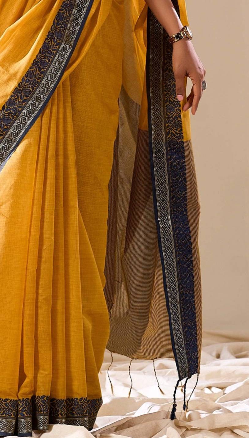 Elegant Yellow Handloom Cotton Saree - Radiant Elegance for Special Occasions