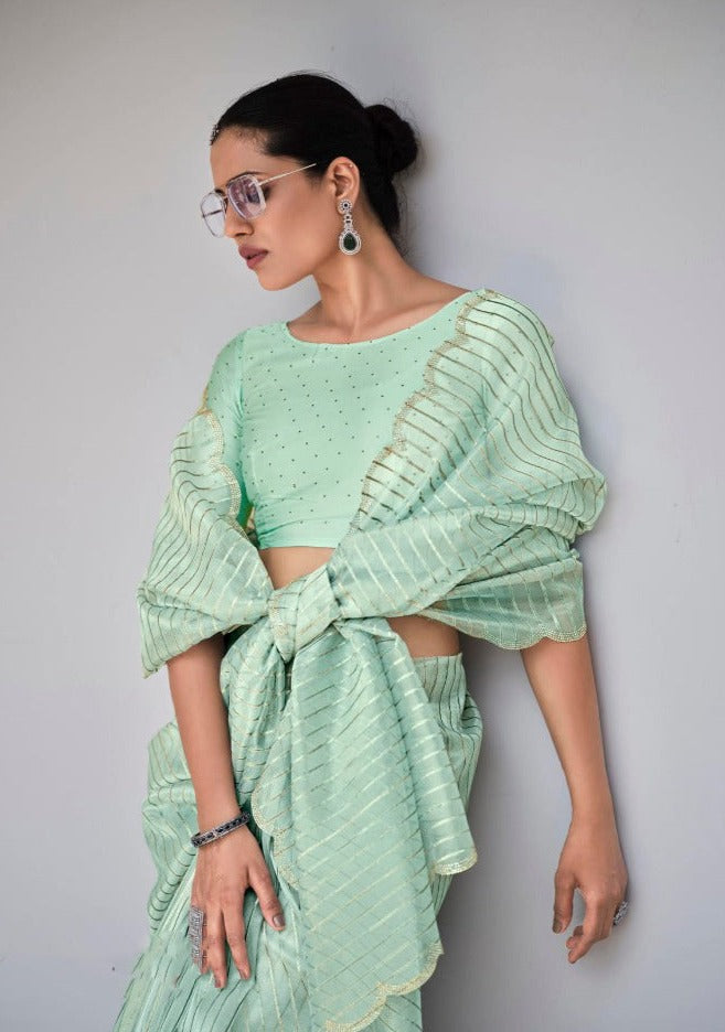 Enchanting Light Green Organza Silk Saree: Intricate Design and Perfect for Special Occasions