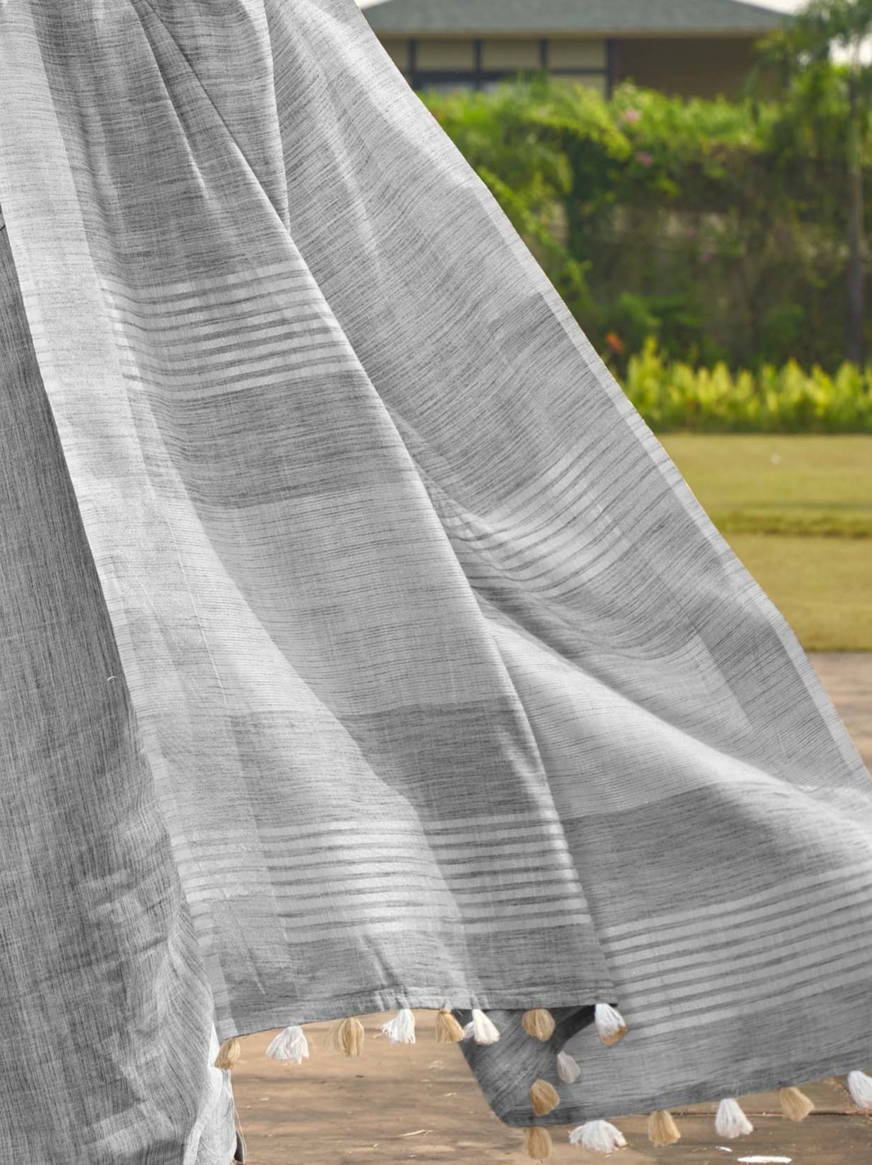 - Elevate your wardrobe with this sophisticated AshenGrey Linen Silk Saree.