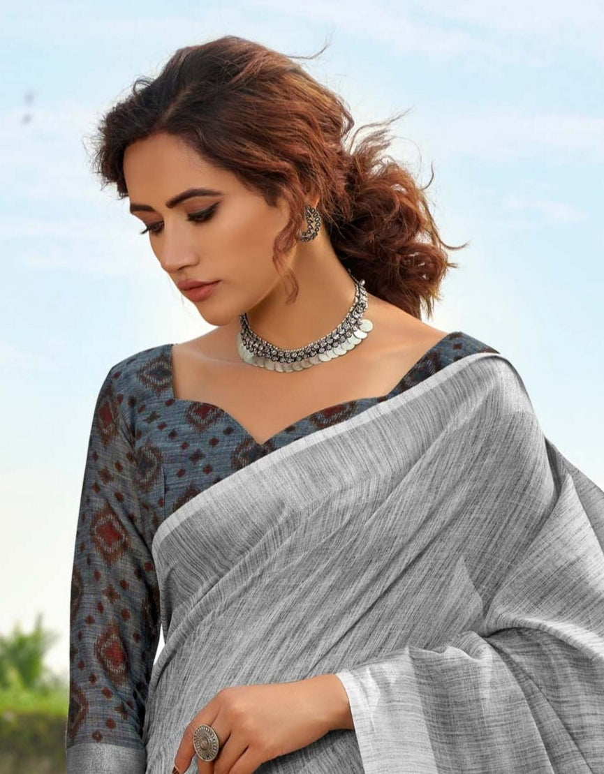 Discover Timeless Elegance: AshenGrey Soft Linen Silk Saree