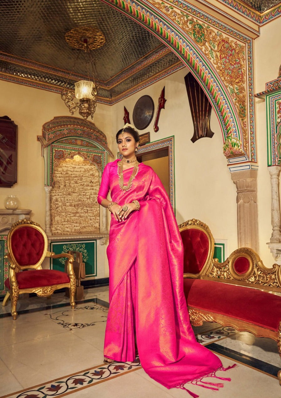 Elegance Personified: Fuchsia Pink Zari Woven Kanjivaram Silk Saree