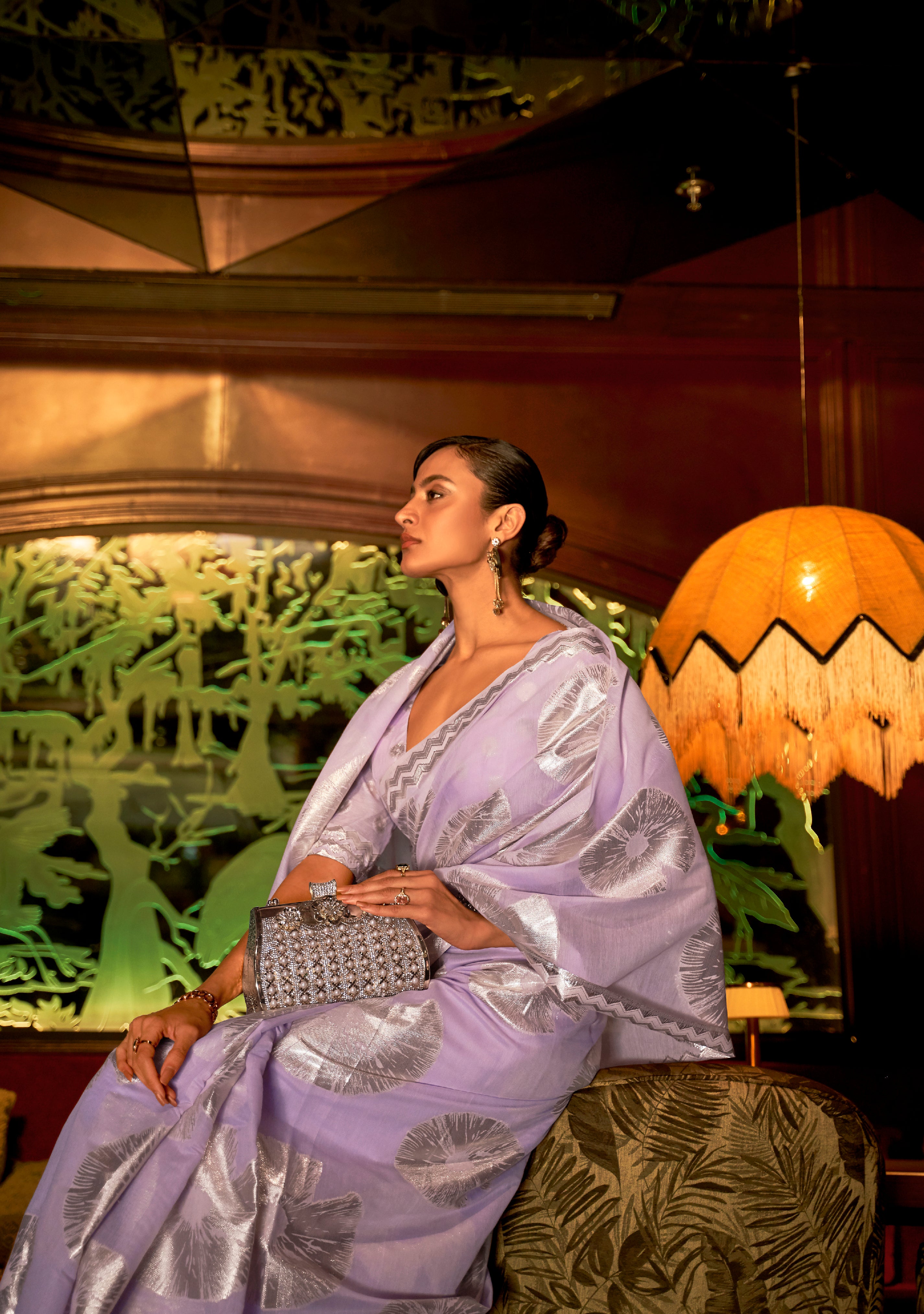 Elevate your ethnic wardrobe with the Stunning Lavender Woven Banarasi Partywear Silk Saree, a beautiful blend of tradition and modern elegance.