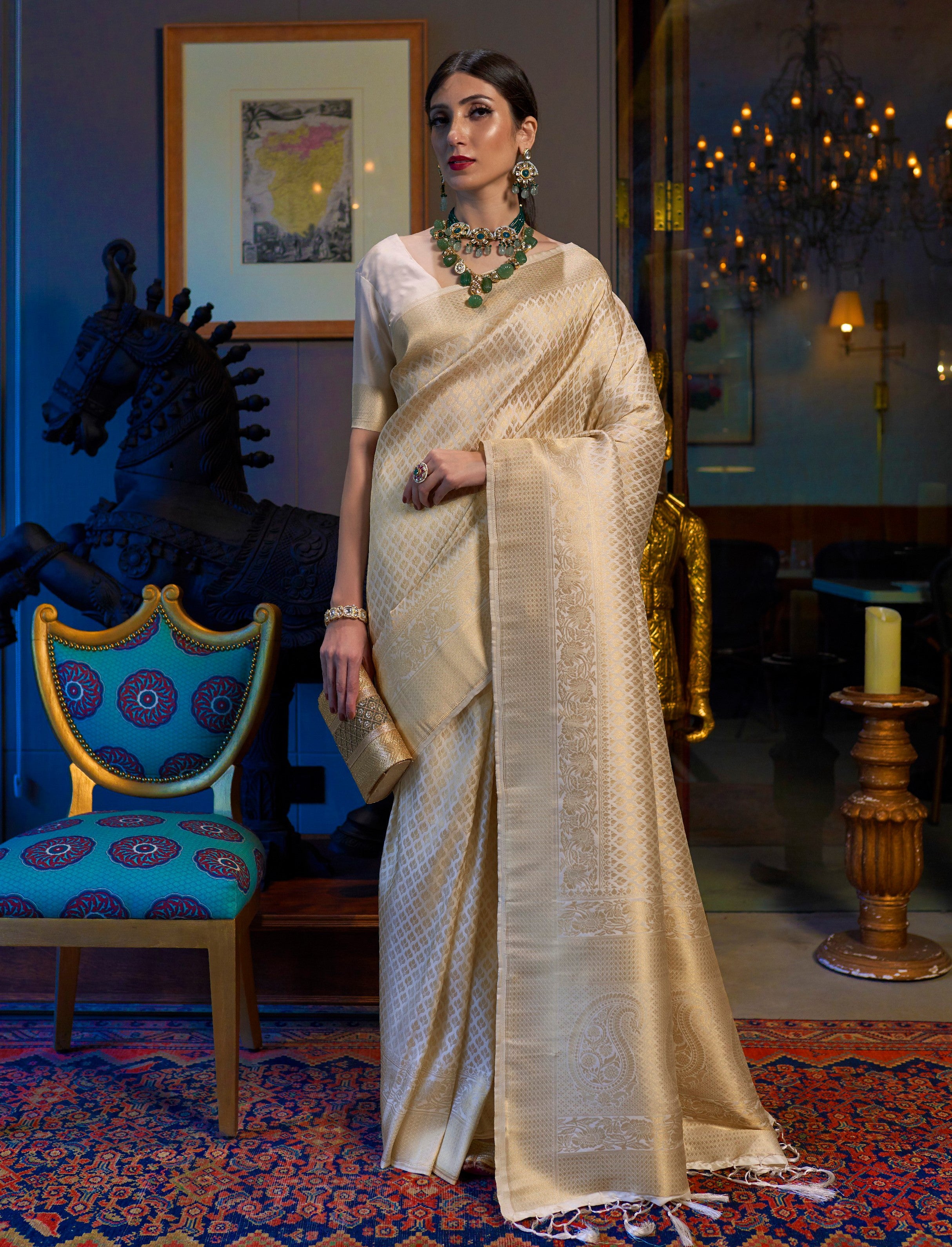 Golden Ivory Dream Kanjivaram Saree: Luxurious Elegance for Special Occasions