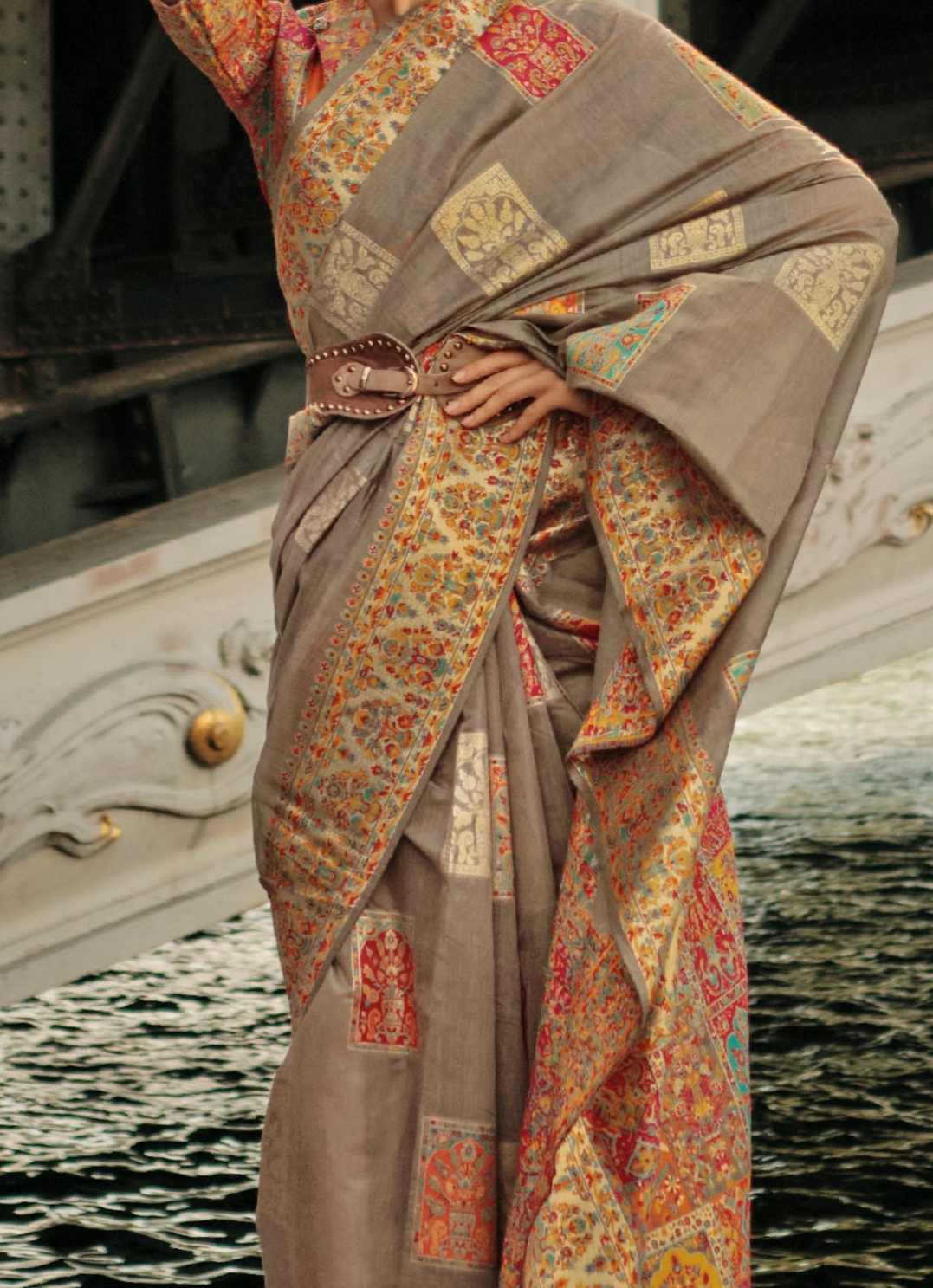 Graceful Light Brown Kashmiri Jamewar Handloom Saree