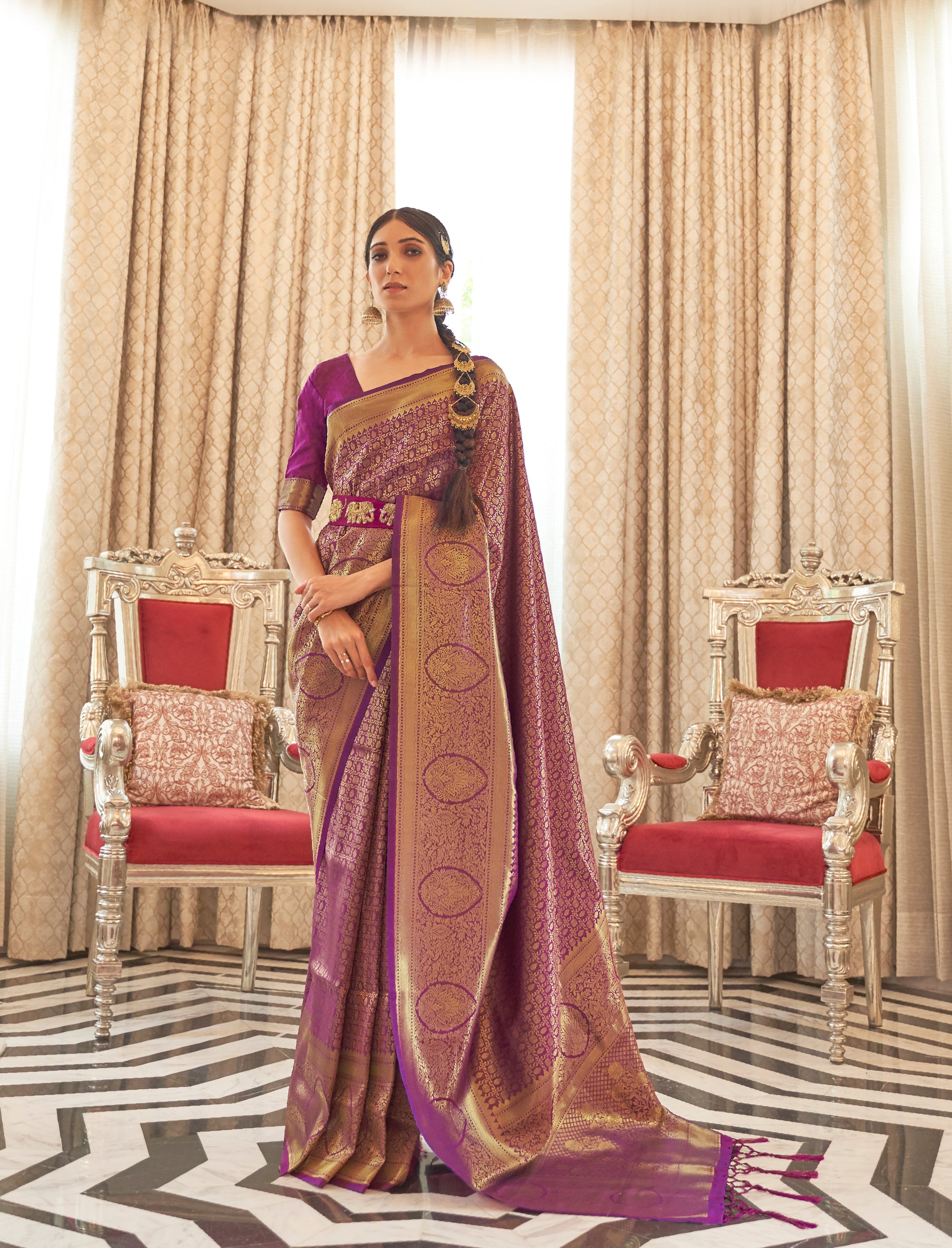 Imperial Purple Zari Woven Kanjivaram Saree: Regal Elegance for Special Occasions