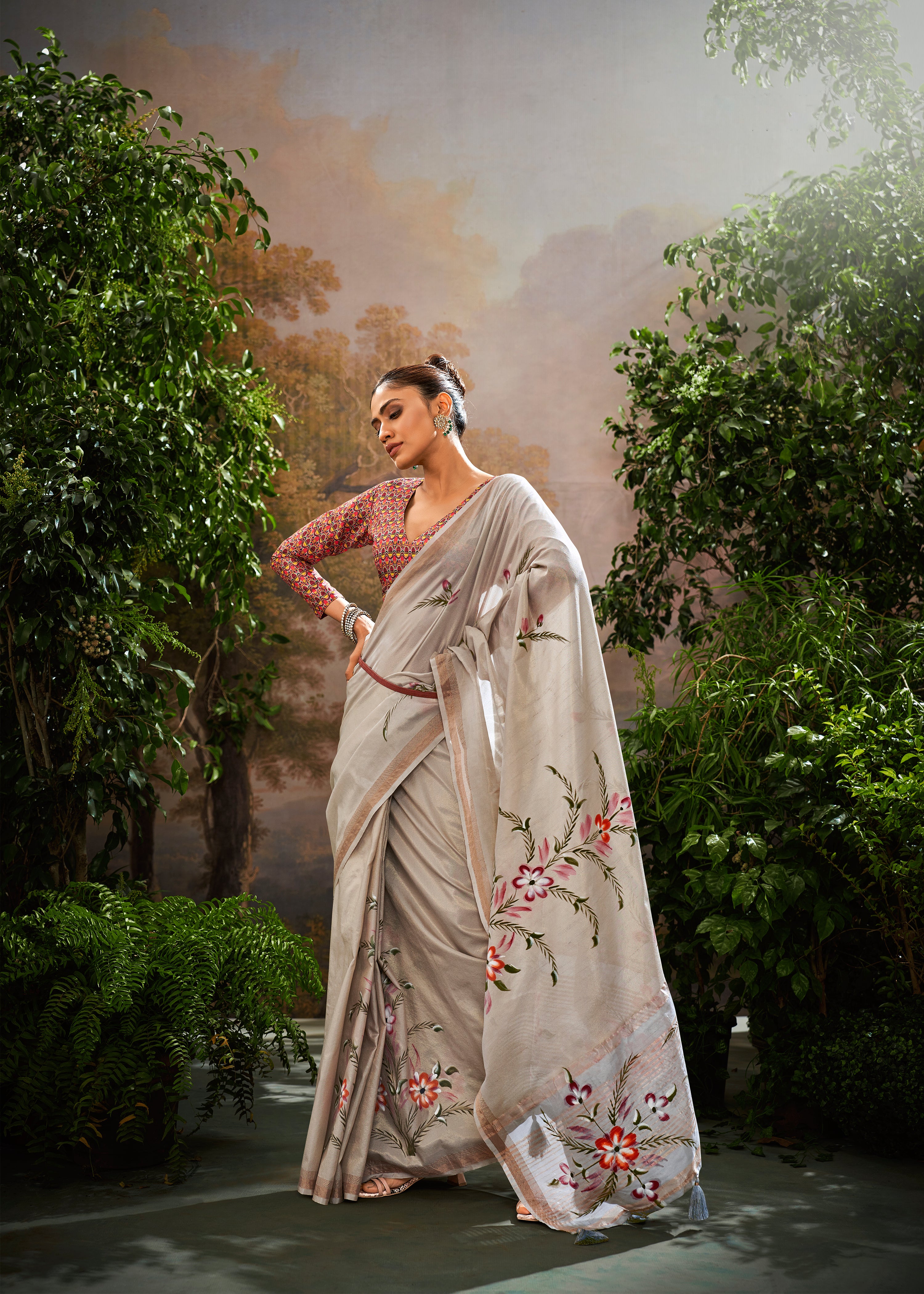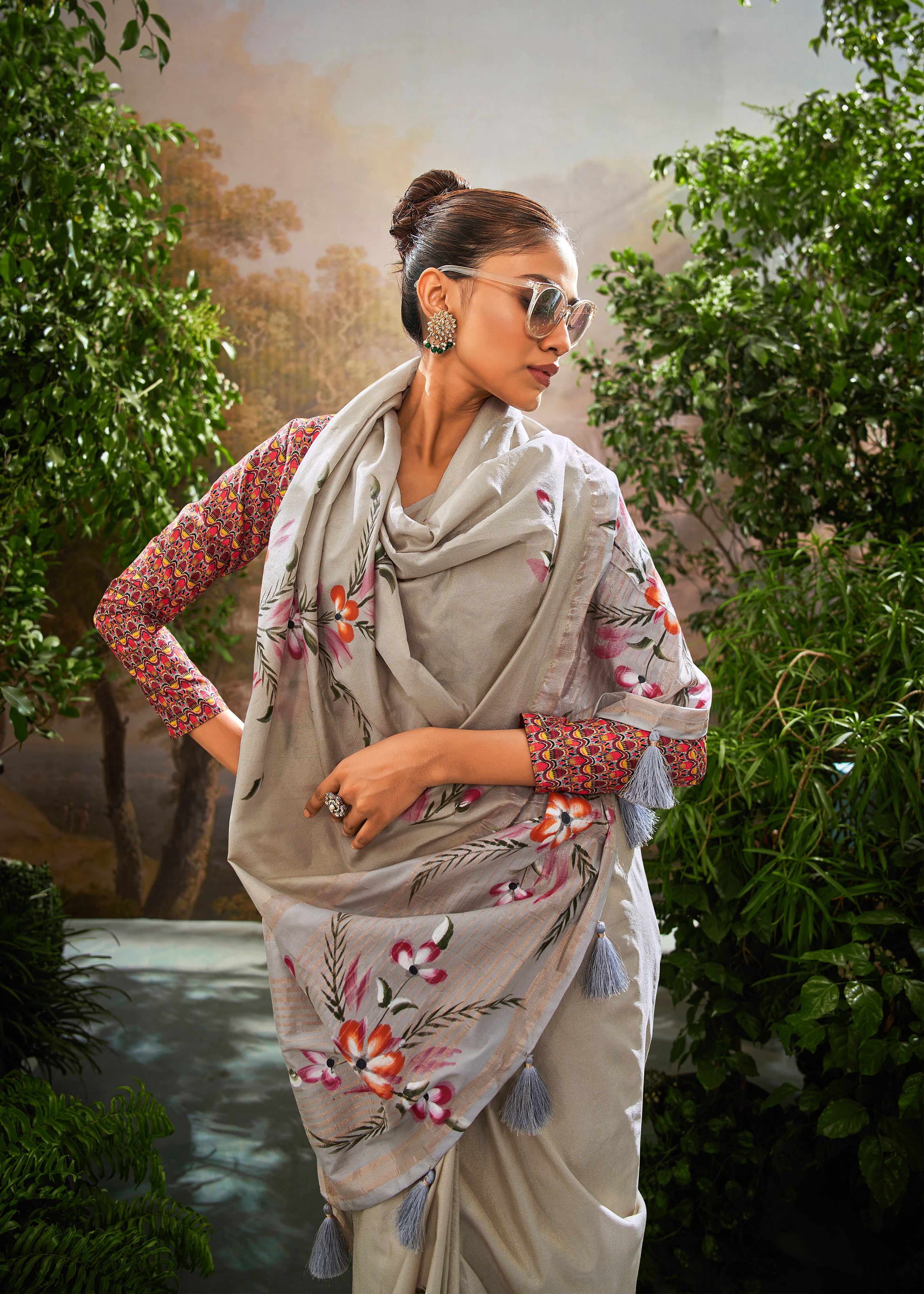Toned Grey Coloured Soft Linen Tissue Saree – Timeless Luxury & Grace