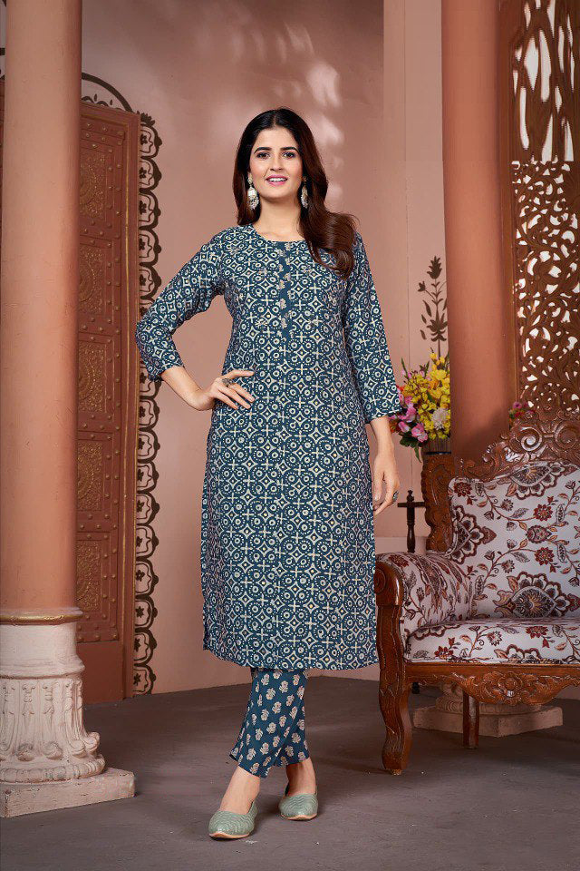 In a timeless shade of Majestic Blue, this set exudes understated elegance, making it perfect for both casual and festive occasions.
