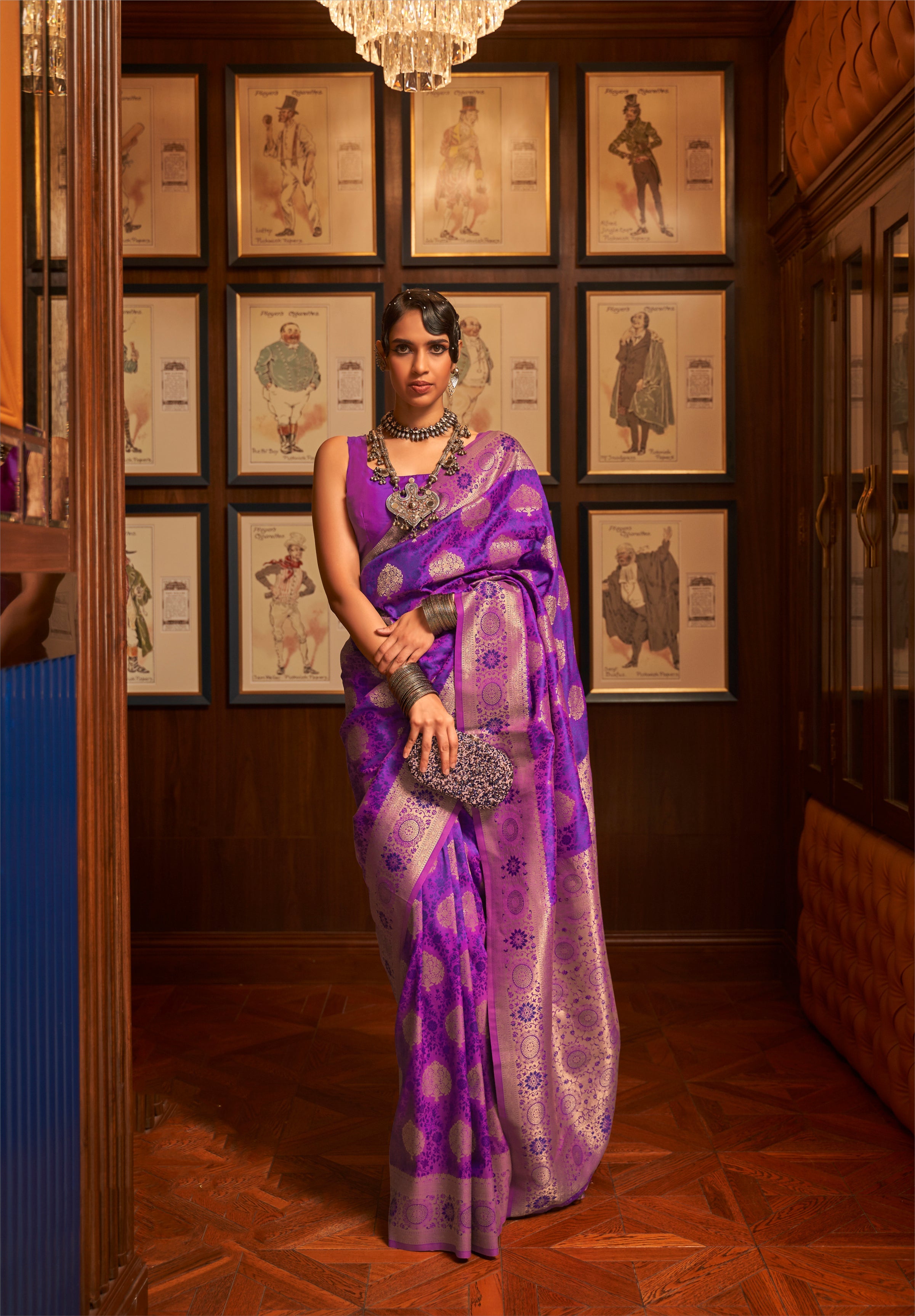 Majestic Plum Orchid Zari Woven Kanjivaram Saree