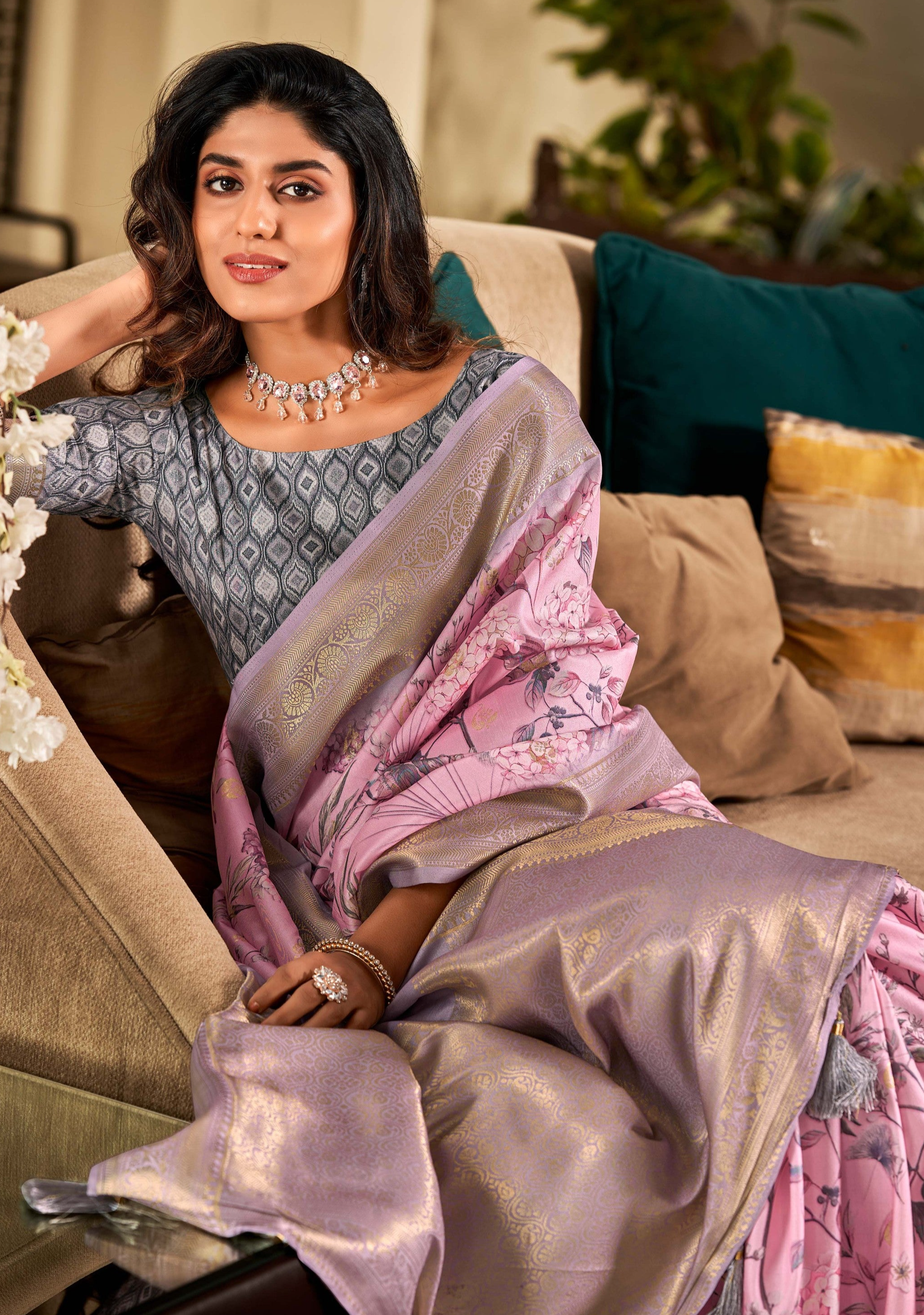 Opulent Purple Digital Printed Soft Silk Saree: Embrace Luxury with Regal Plum Hues