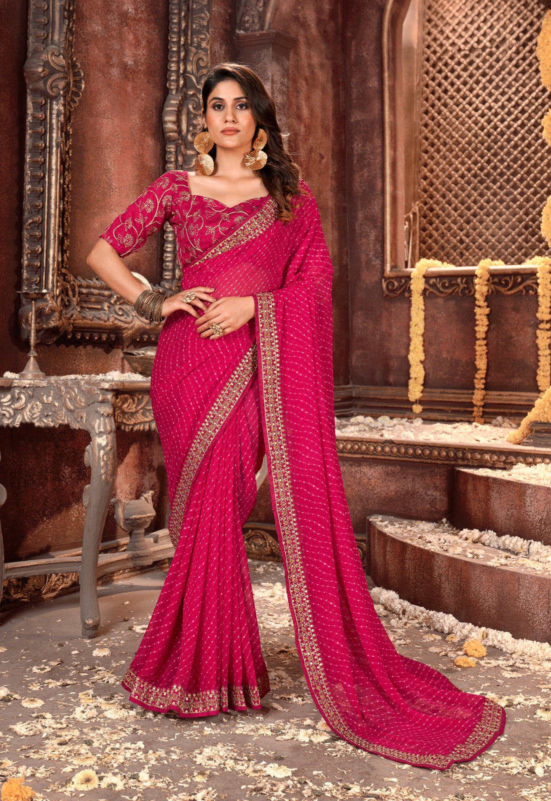 Georgette with beautiful Bandhni Print Saree - Timeless Elegance in Bright Pink
