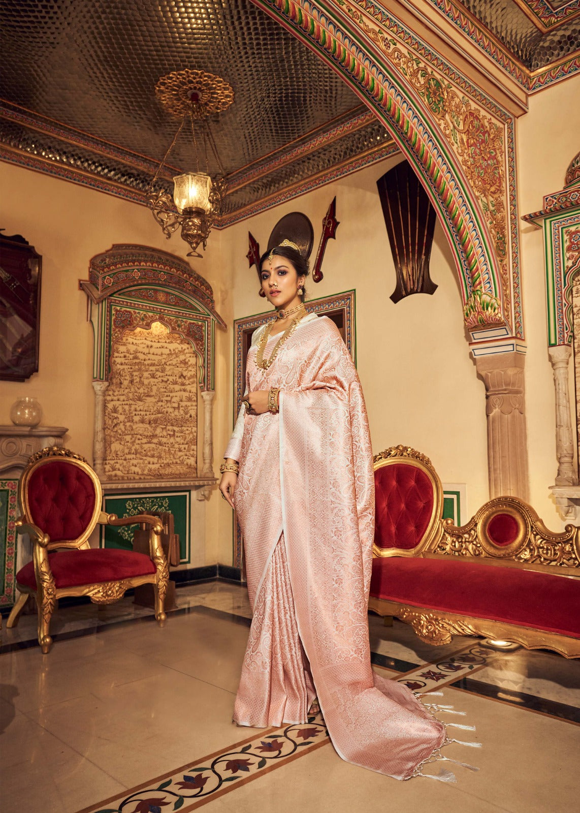 - Exquisite Zari Work: Adorned with intricate gold and silver zari weaving, adding a touch of regal elegance.
