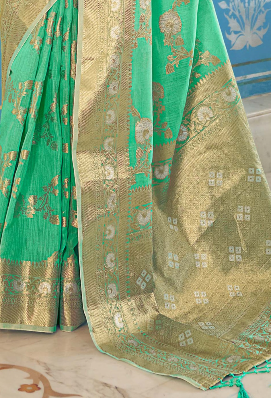 Elevate Your Look with Pistachio Green: Luxurious Linen Silk Saree