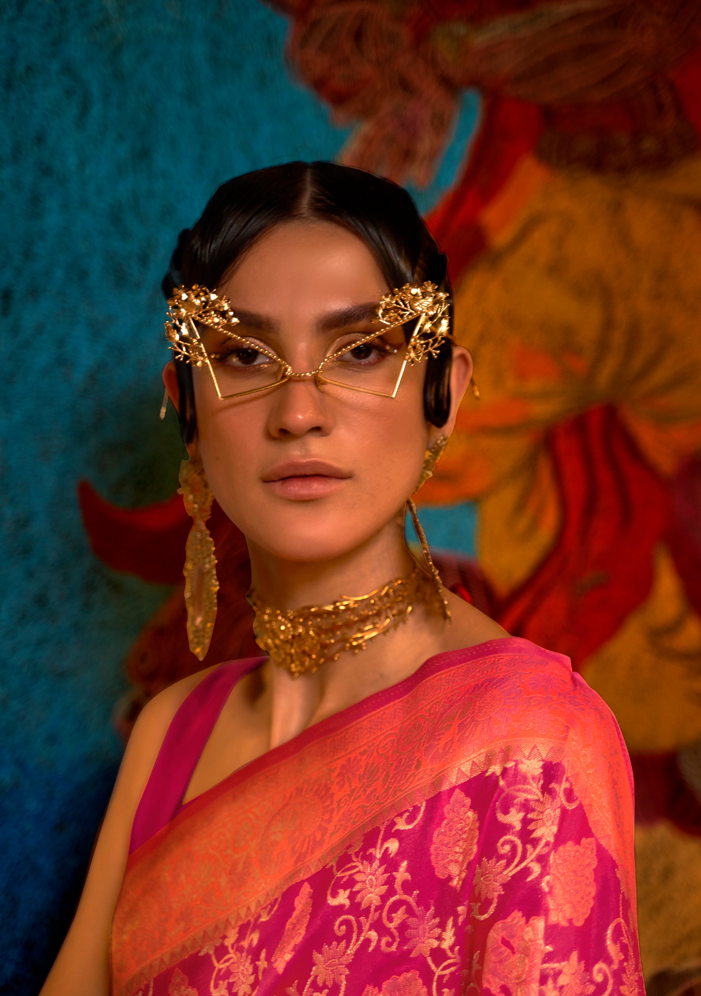 Intricate Woven Design: Features exquisite Banarasi weaving patterns that showcase traditional artistry.