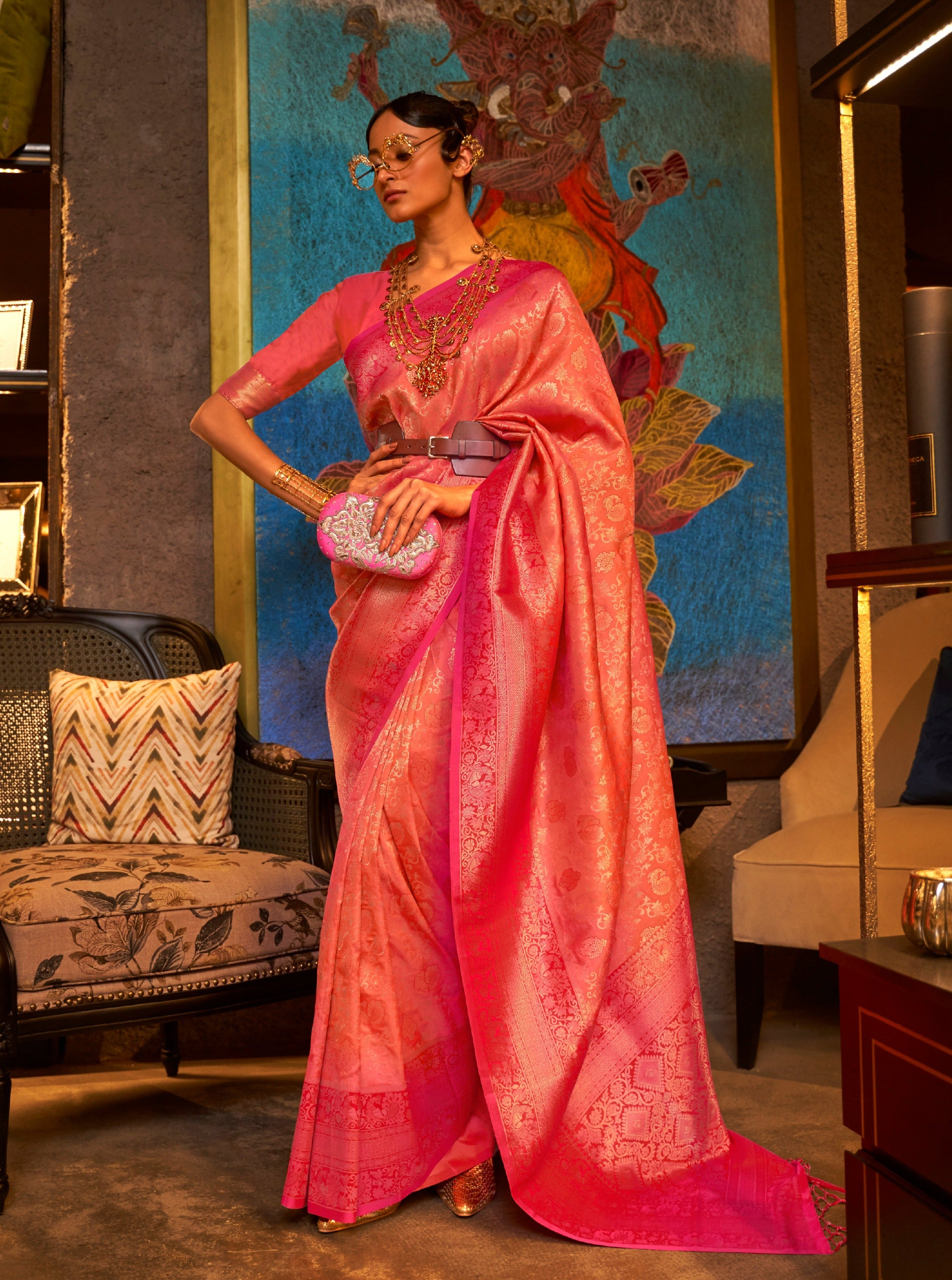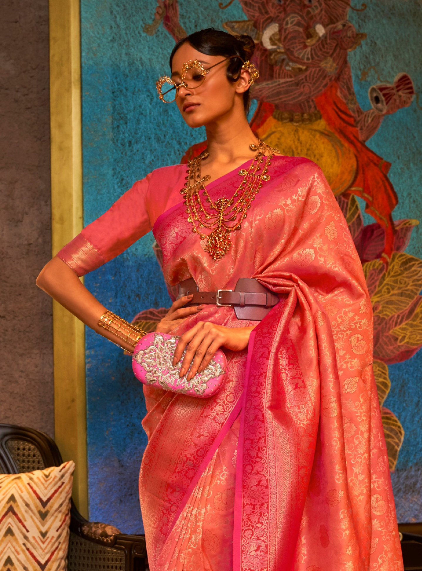 Posh Baby Pink Woven Banarasi Soft Silk Saree