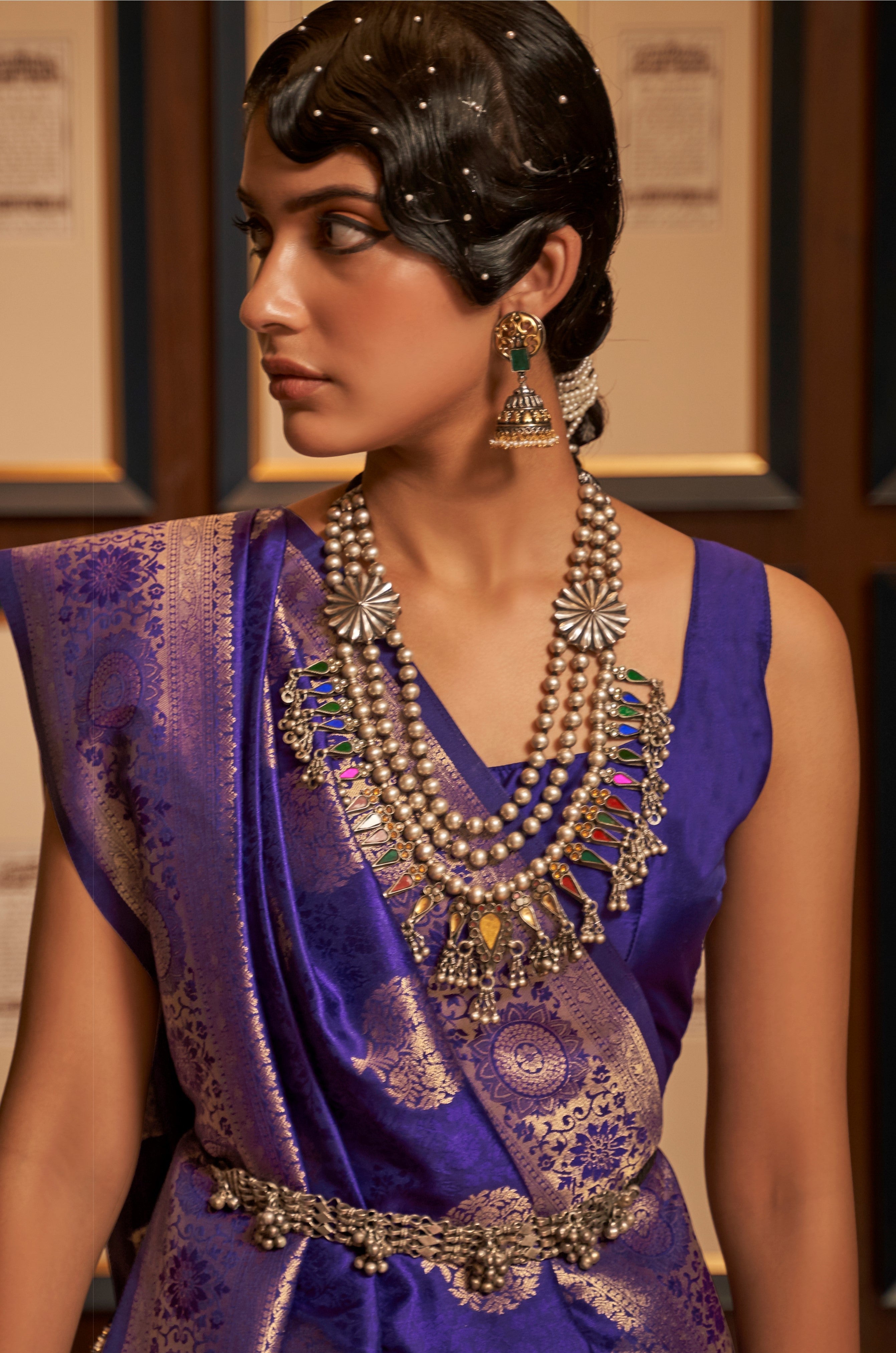 Prussian Blue Majesty Zari Woven Kanjivaram Silk Saree