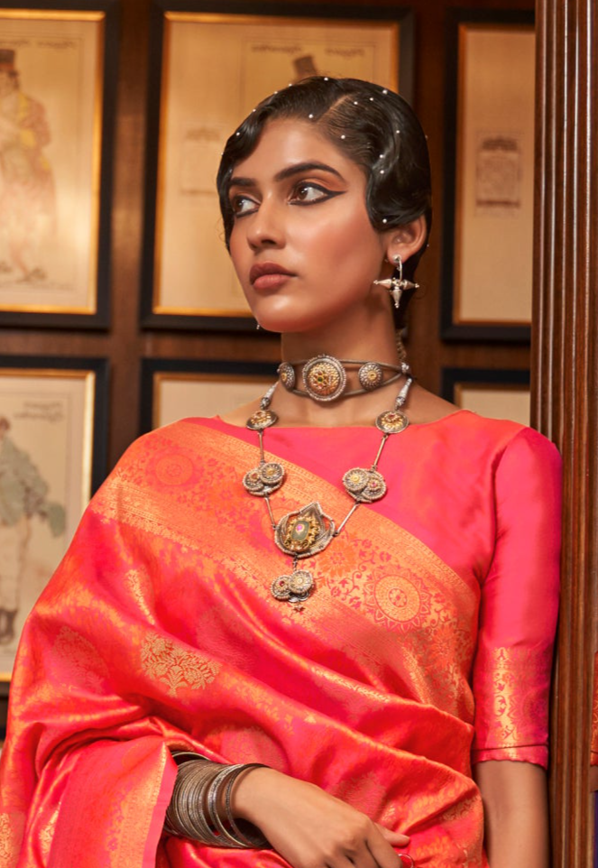 Pumpkin Orange Zari Woven Kanjivaram Saree: Timeless Elegance for Special Occasions