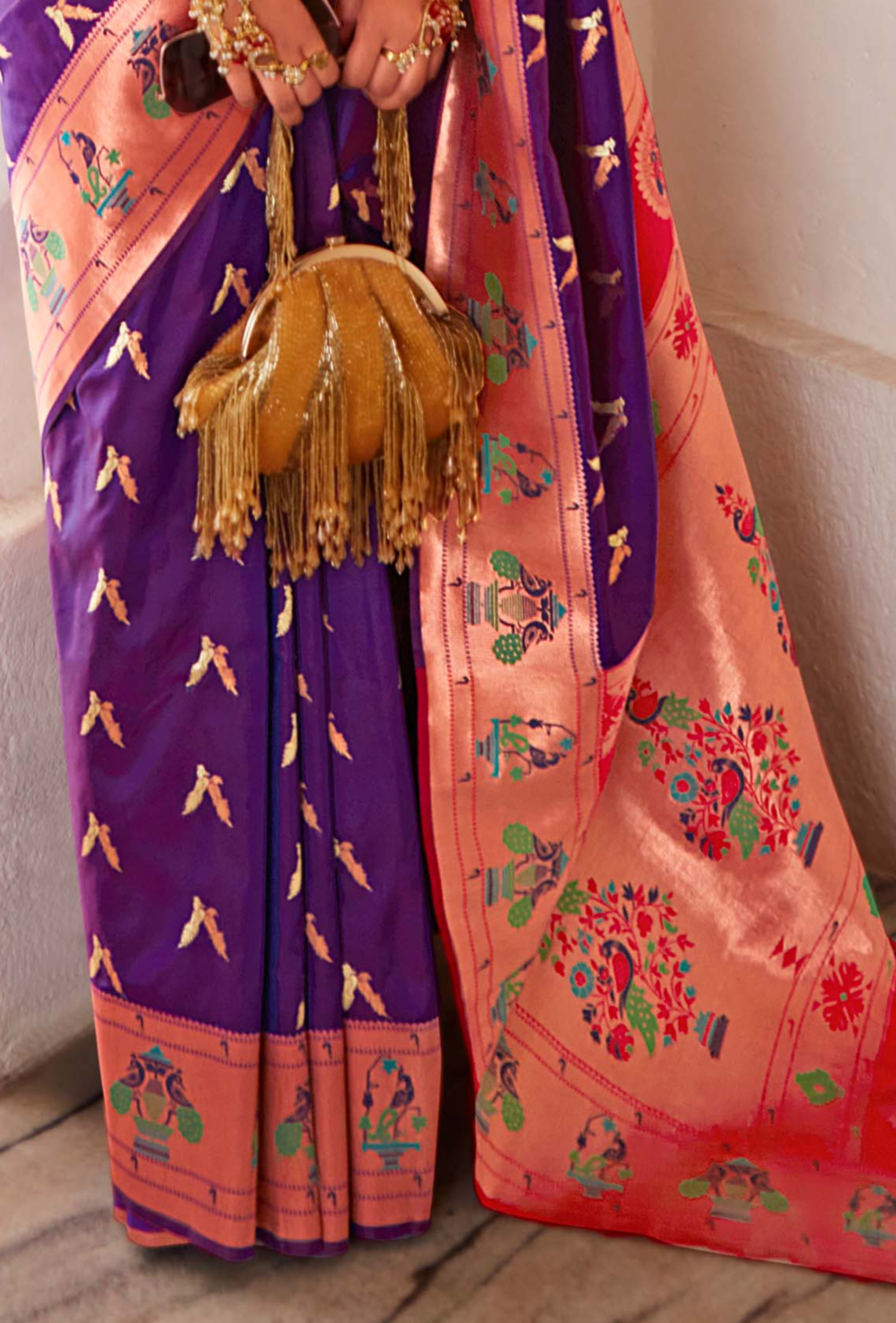 Regal Dual Tone Purple and Pink Zari Woven Paithani Silk Saree