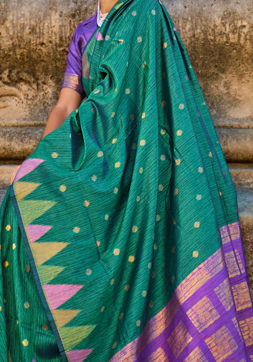 Regal Green Woven Khadi Temple Border Saree - A Perfect Blend of Tradition and Elegance