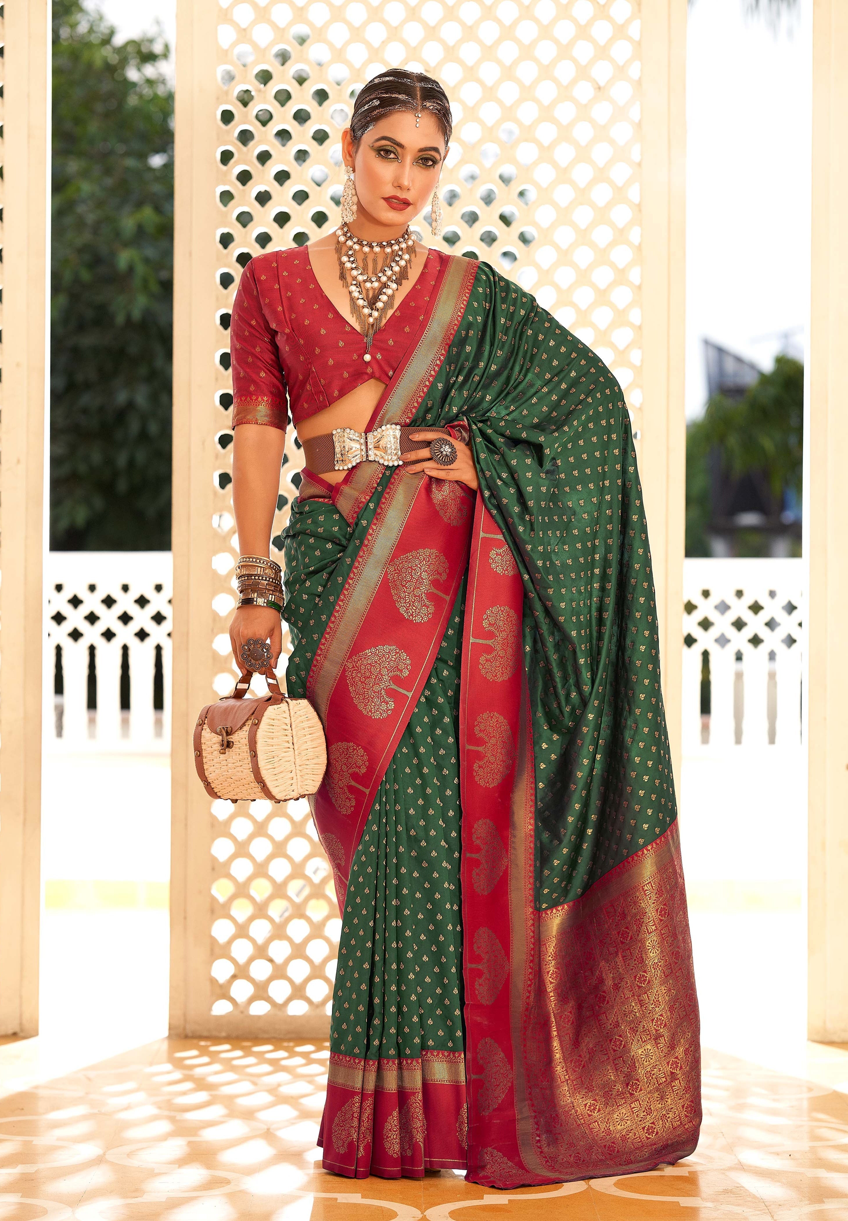 Regal Peacock Green & Red Banarasi Soft Silk Saree