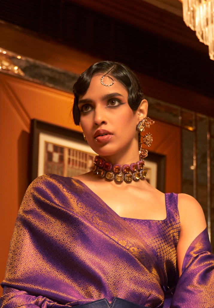 Regal Purple Zari Woven Kanjivaram Silk Saree