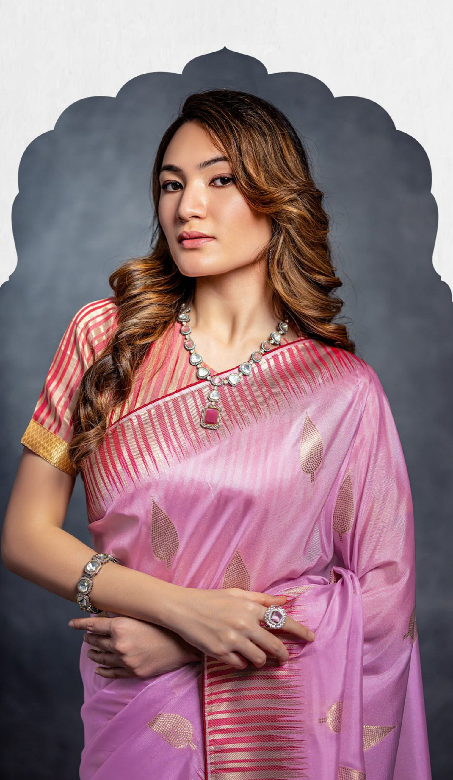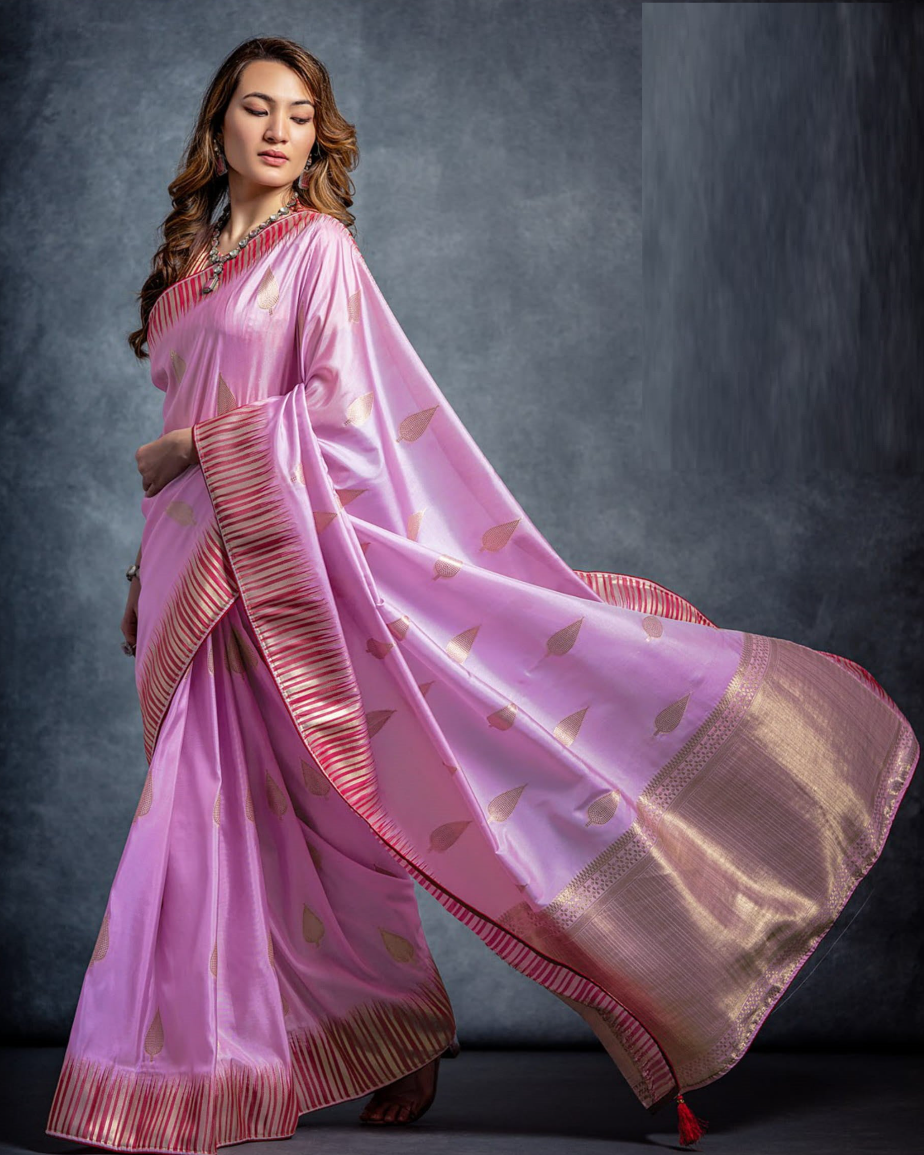 Rose Quartz Pink Zari Weaving Cotton Silk Saree: Timeless Elegance for Special Occasions