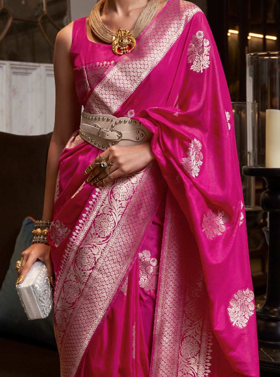 Rosy Dark Pink Woven Georgette Silk Saree - Elegance Redefined for Special Occasions