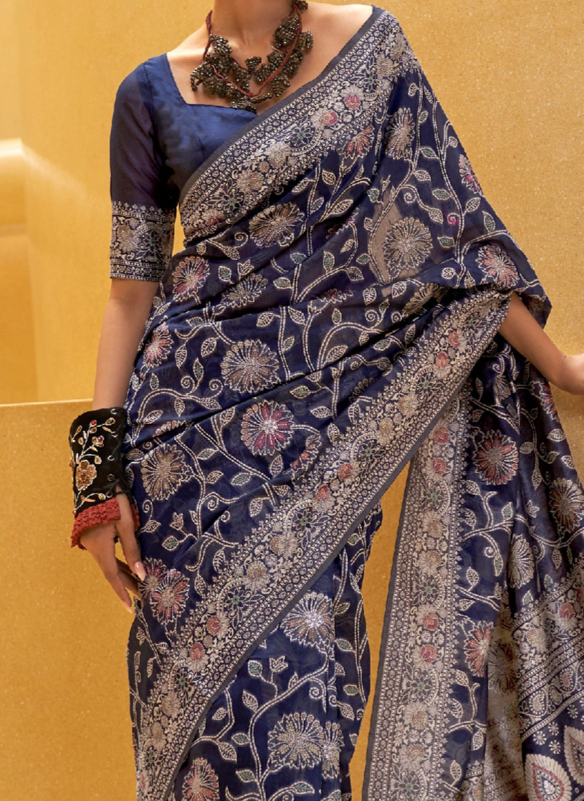 Royal Navy Blue Woven Lucknowi Chikankari Saree