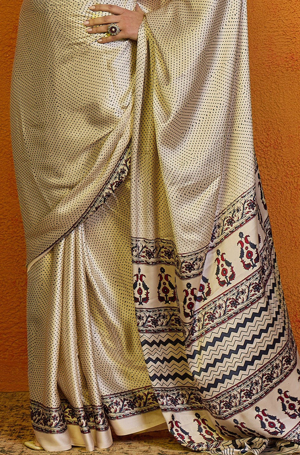 Elegant Cream Ajrakh Saree - A Timeless Heritage Piece